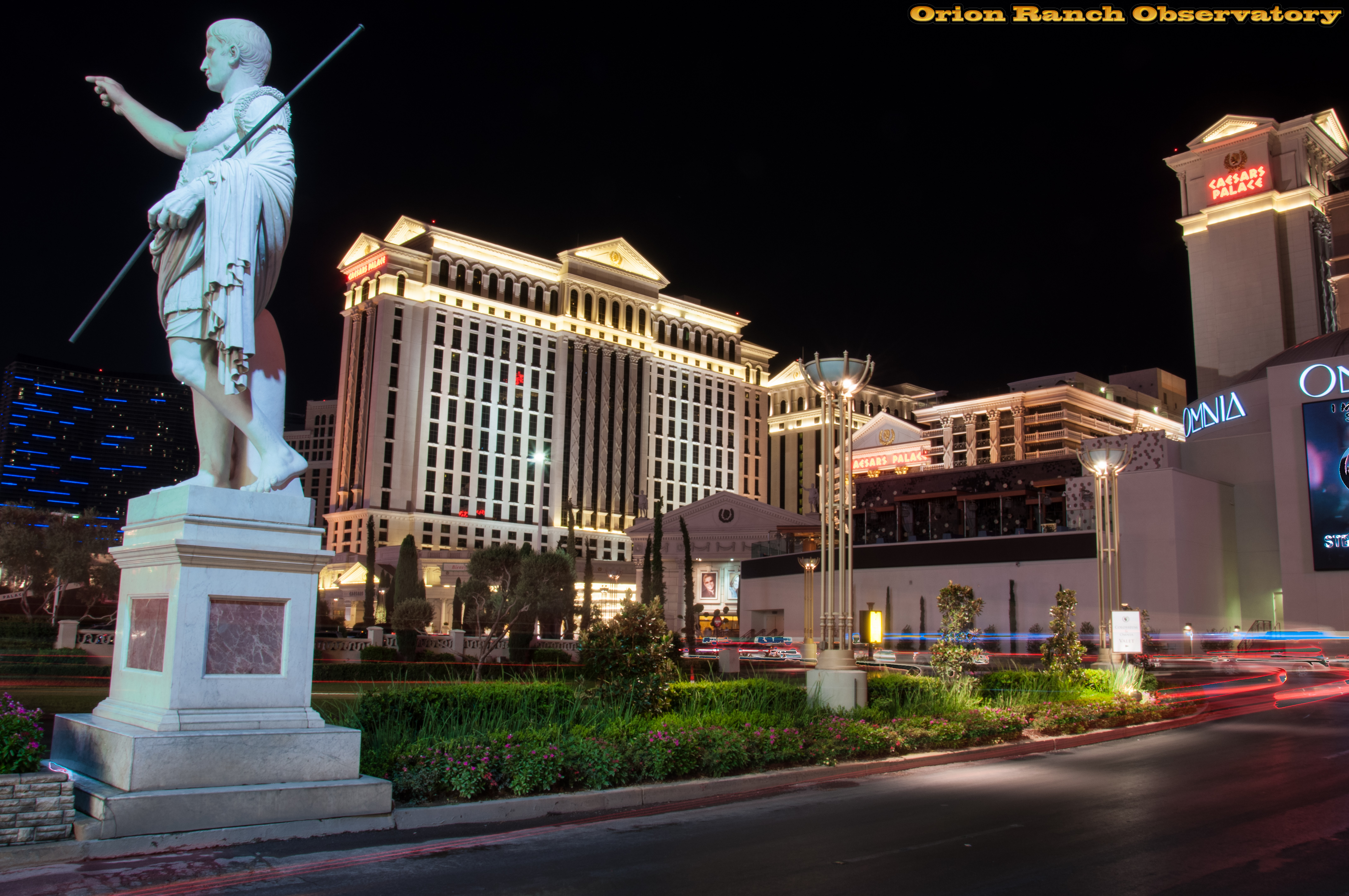 The main driveway in front of Caesar's Palace, with and without taillights.