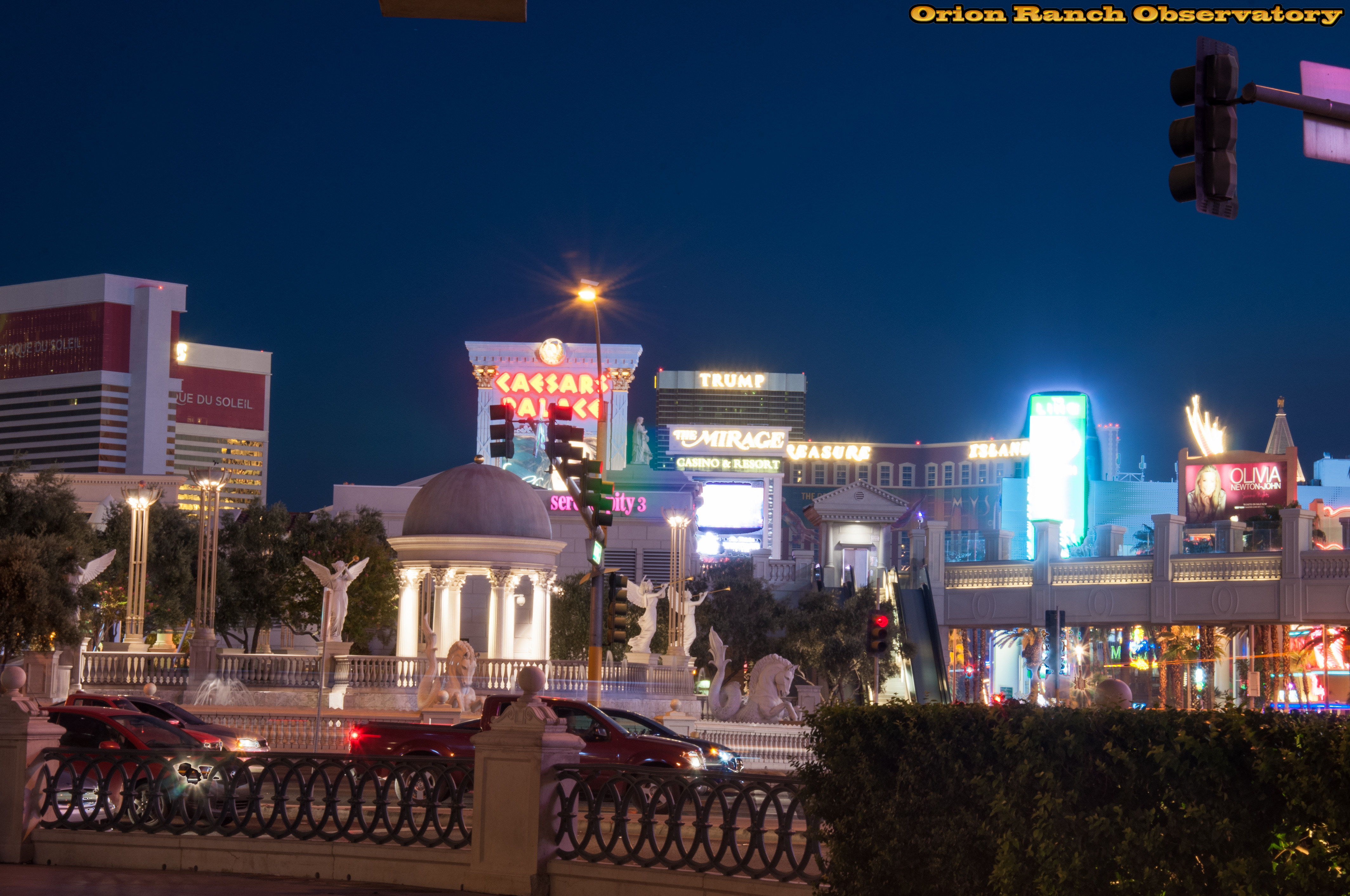 As the sky lightens, here are a couple of shots from the sidewalk in front of the Bellagio shops, seeing the mile of so of the strip I walked from Treasure Island down to Bellagio and back. Doesn't look that far, does it?