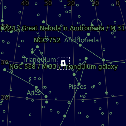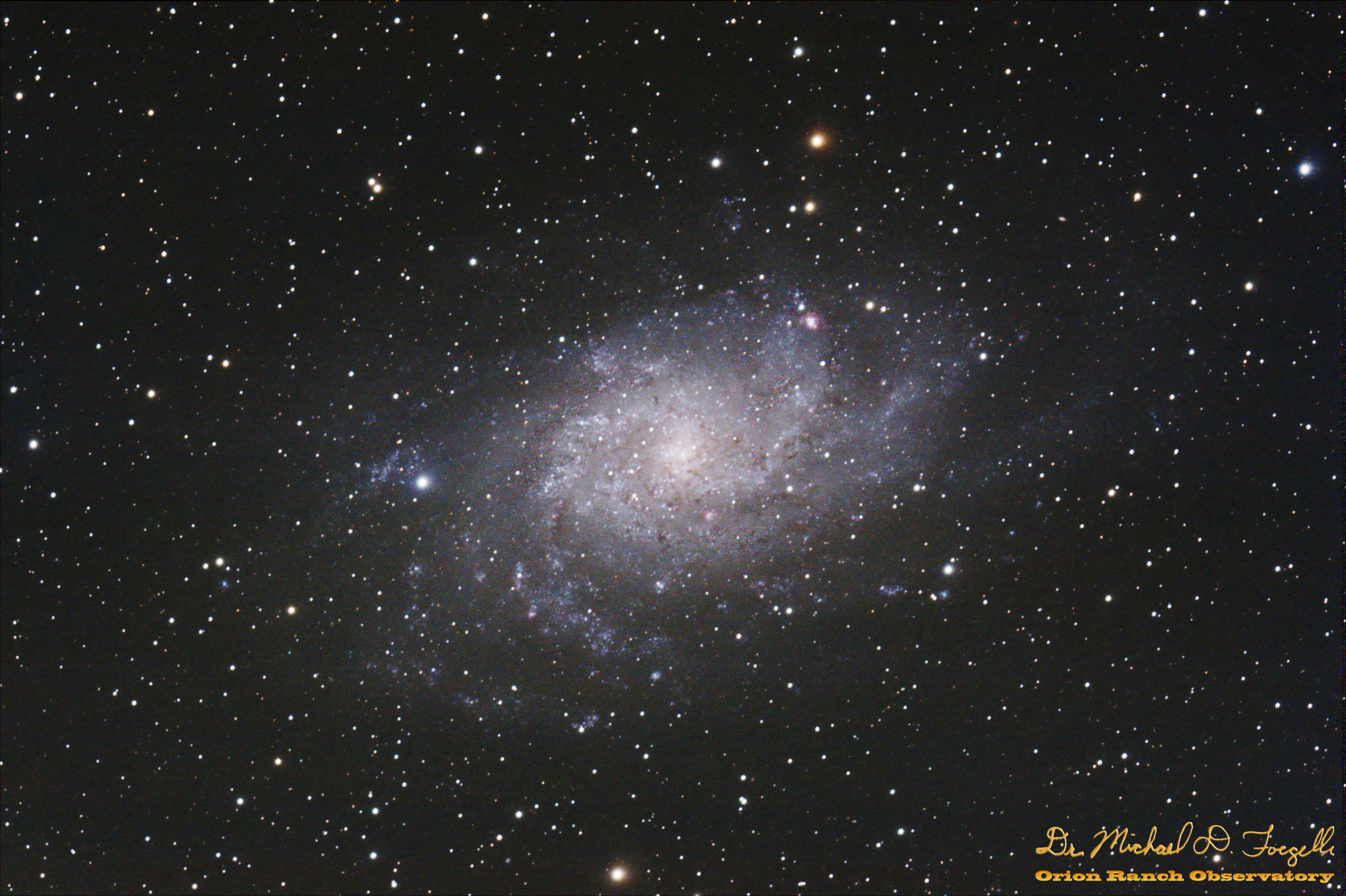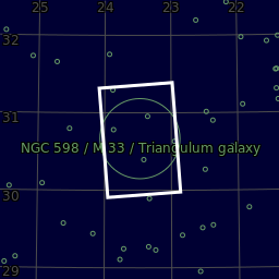 The Triangulum Galaxy (Messier 33 or NGC 598) is a spiral galaxy approximately 3 million light-years from Earth in the constellation Triangulum. M33 is sometimes referred to as the Pinwheel Galaxy, although that name is officially applied to M101. The Triangulum Galaxy is the third-largest member of the Local Group of galaxies, after our own Milky Way and the Andromeda Galaxy.
