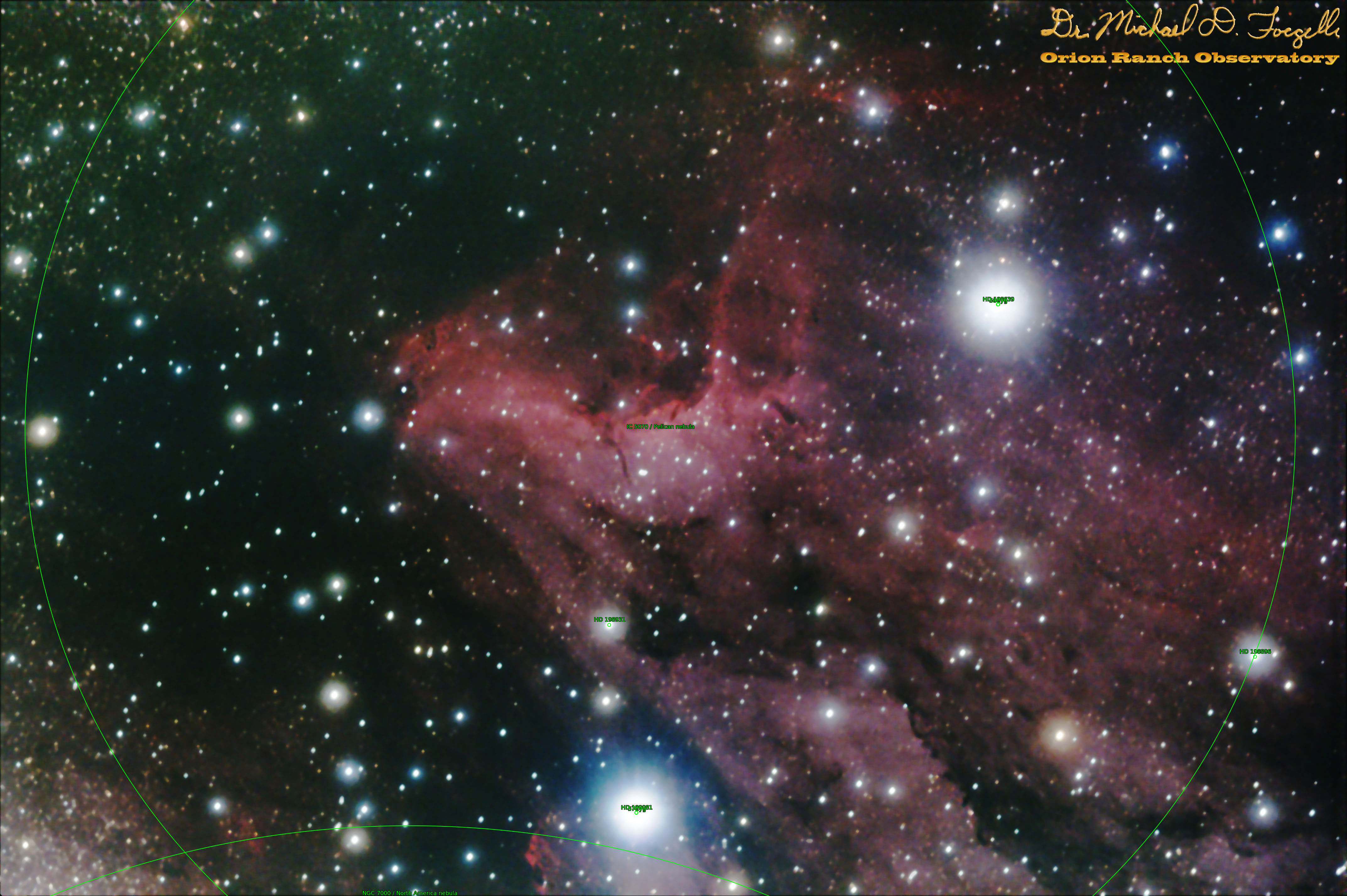 Principal objects in field: IC 5070, Pelican nebula, The star 56Cyg, The star 57Cyg