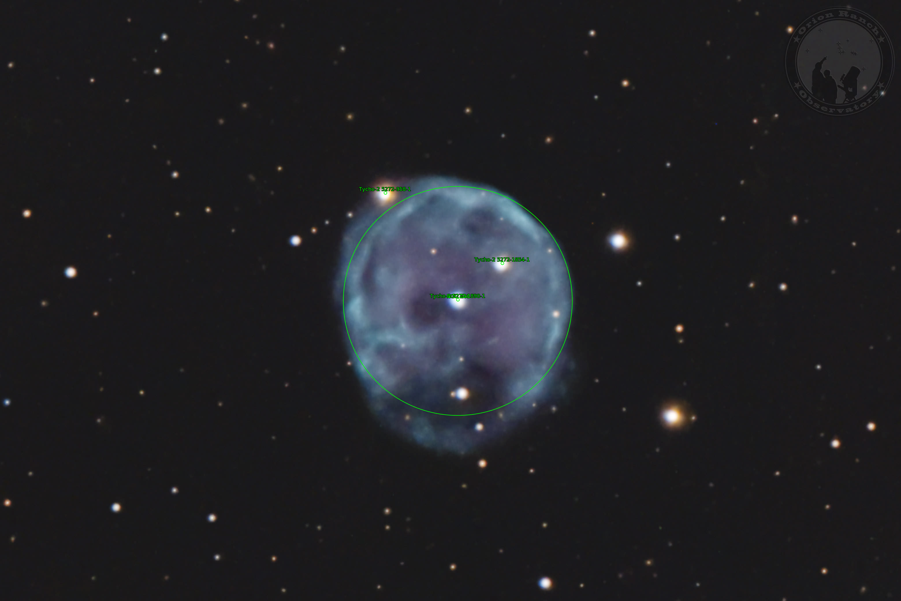 NGC 246, the Skull Nebula, is a relatively large planetary nebula in the constellation Cetus. It is roughly 1,600 light-years away from Earth. The nebula's central star is a 12th magnitude white dwarf, HIP 3678, and is one of the hottest known stars in the galaxy (200,000 C).