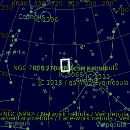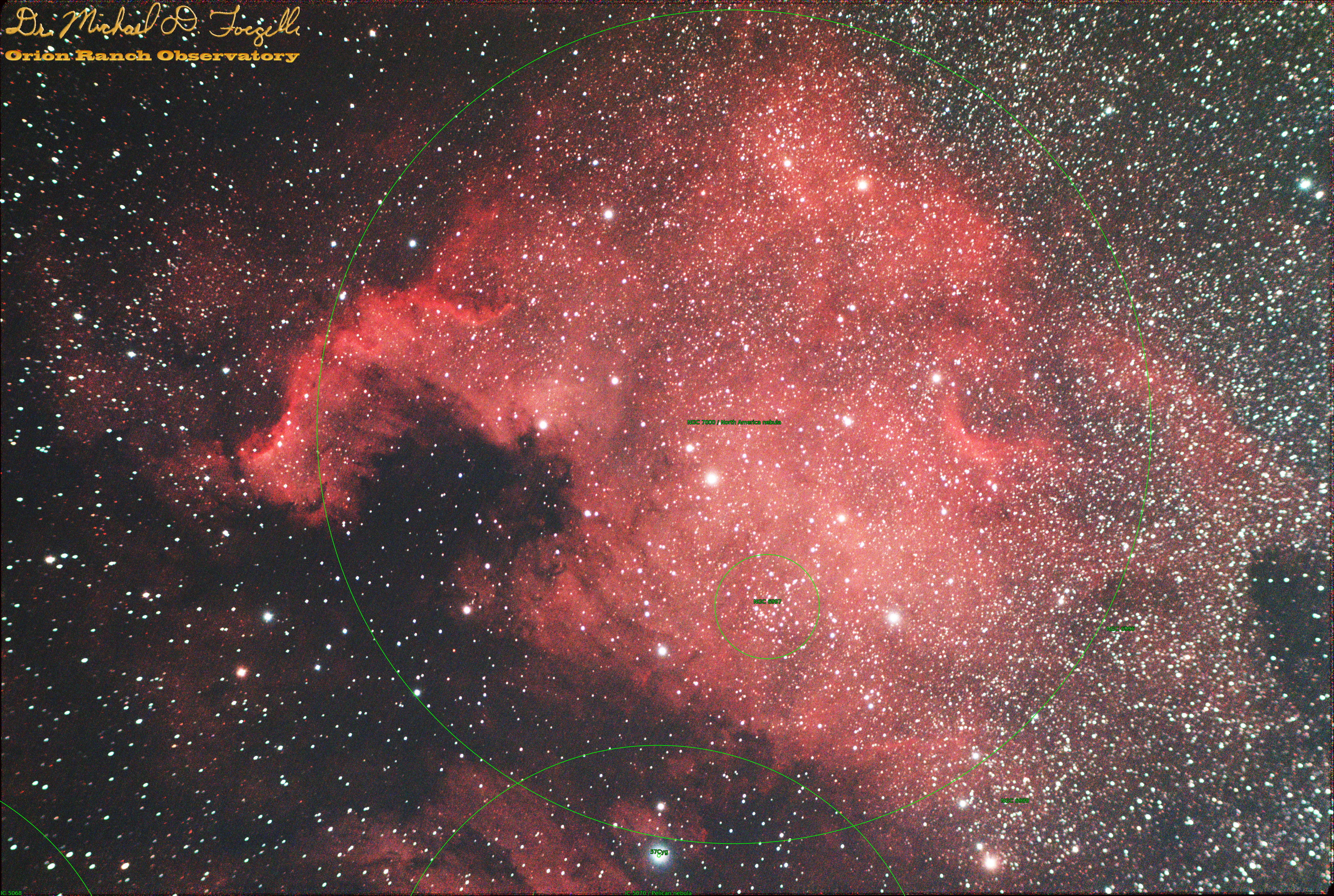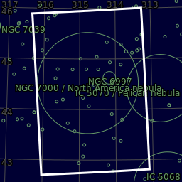 Principal objects in field: NGC 6997, NGC 7000, North America nebula, The star 57Cyg