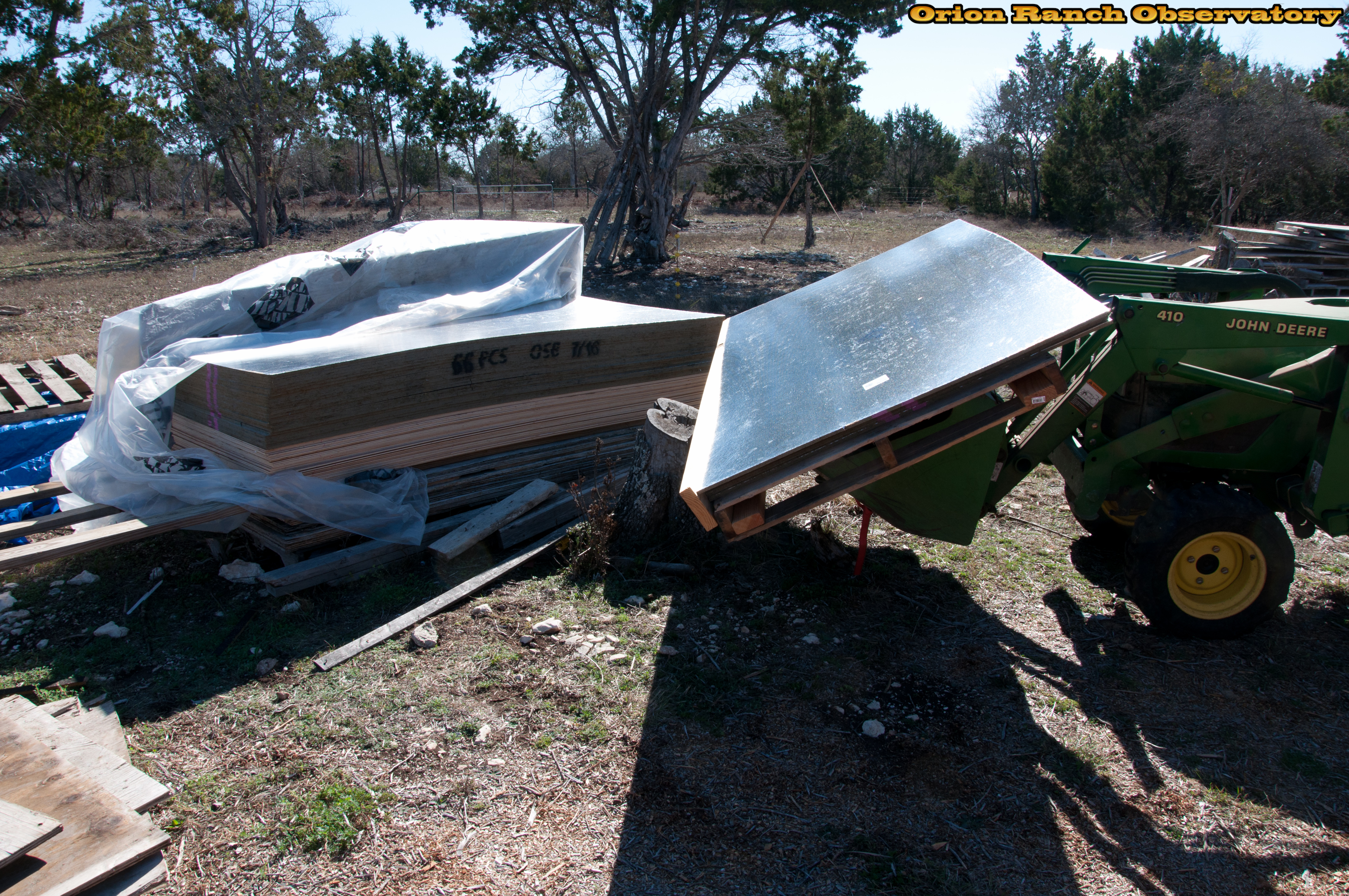 Loading up the first load ofreflective OSB sheathing.