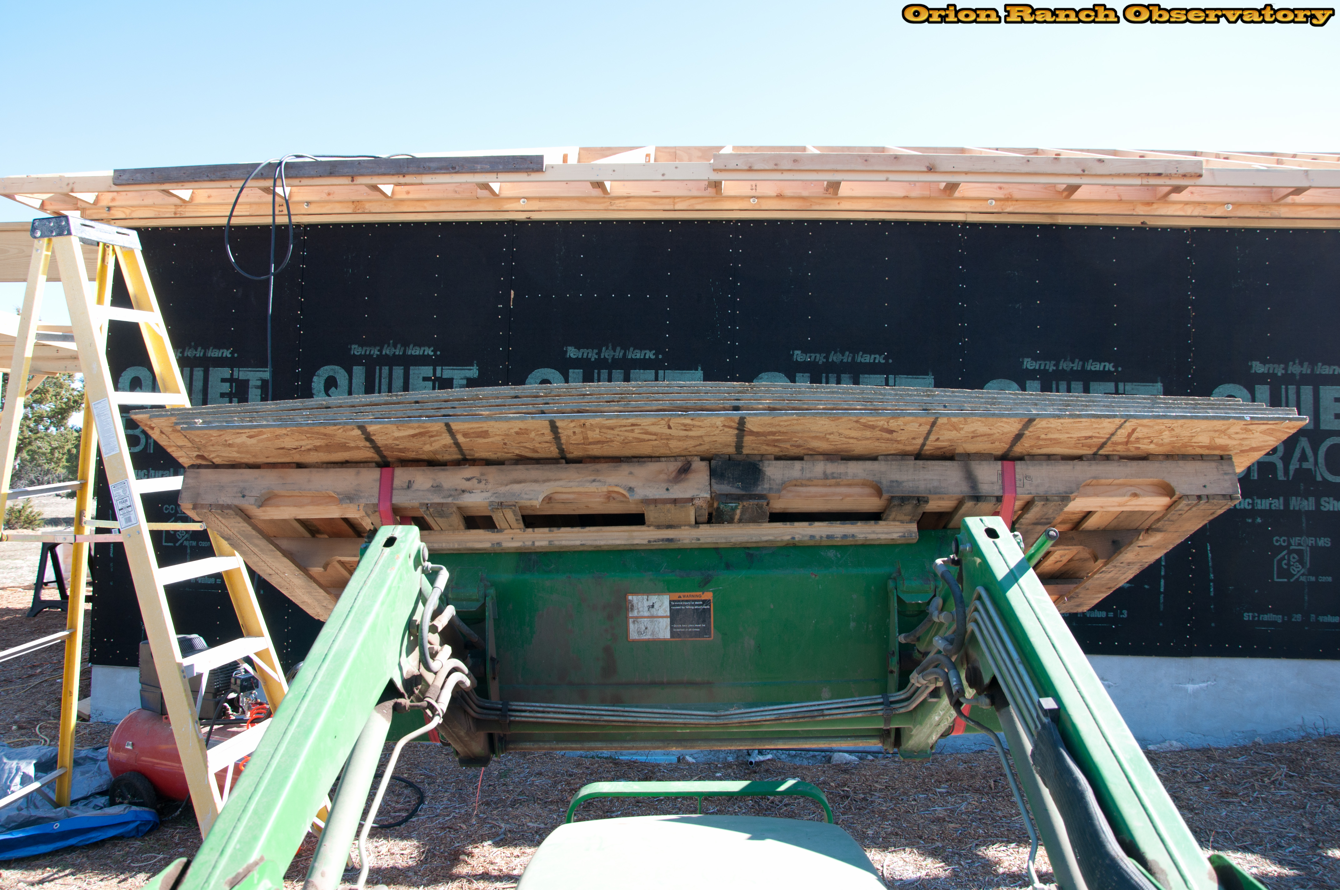 Lifting the first load of OSB as hight as it will go.