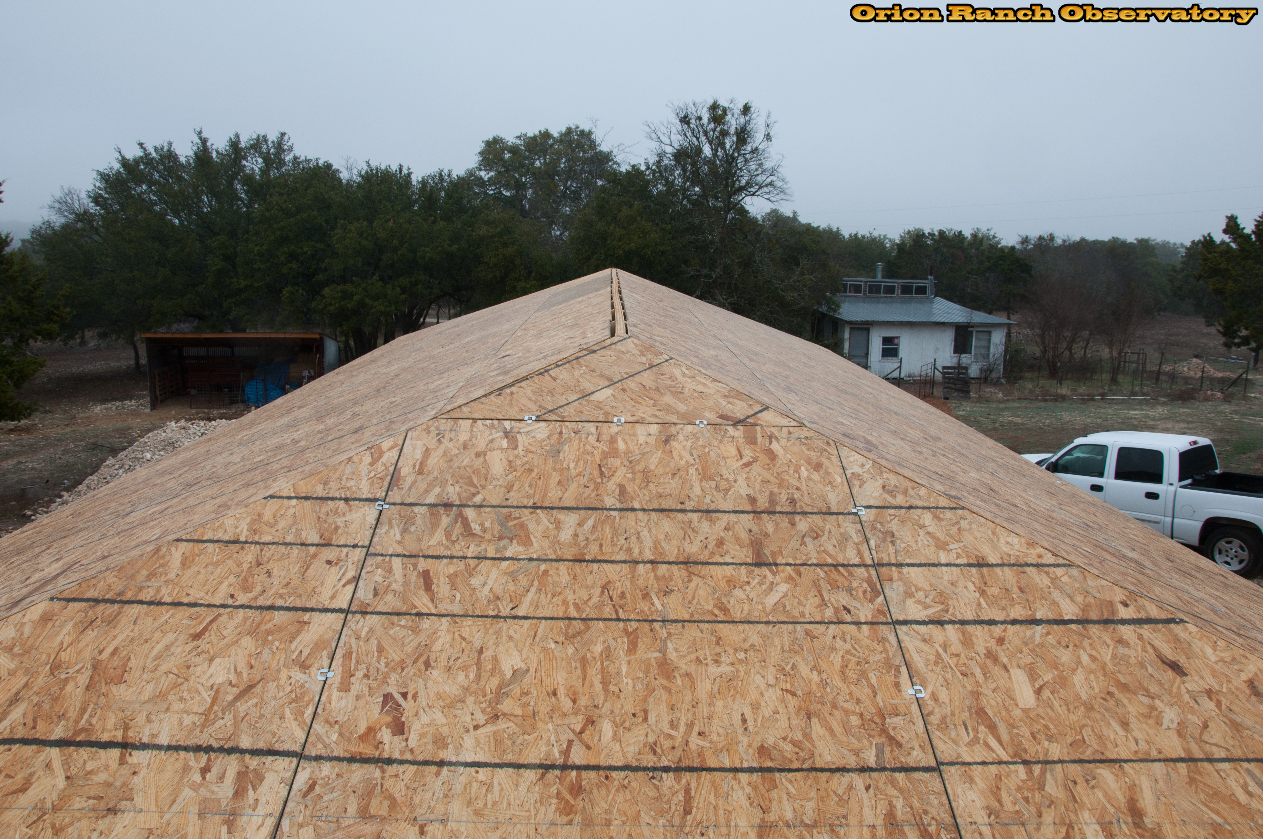 View of the sheathed roof from above.
