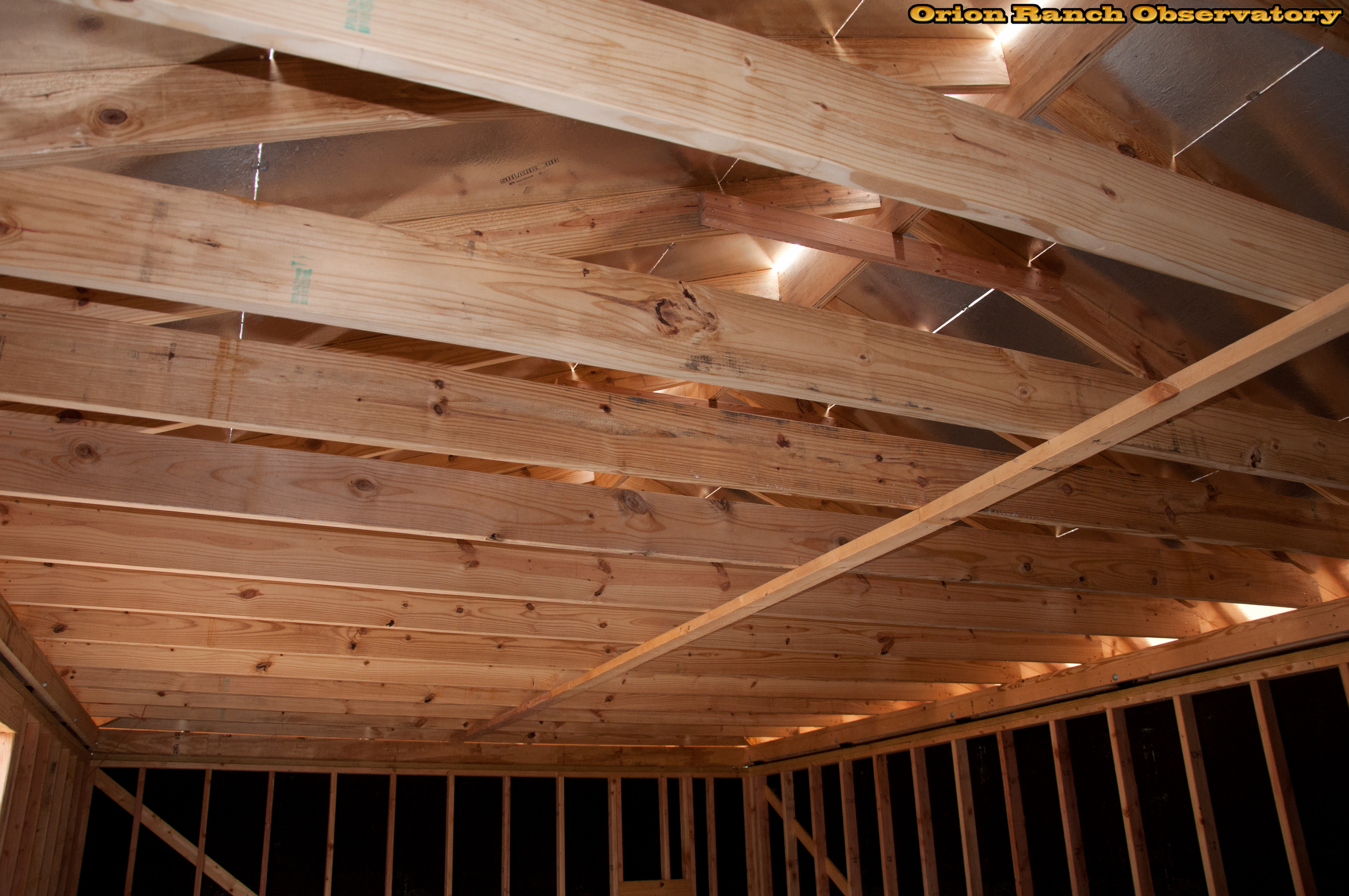 Inside of the observatory iwth the roof closed. Lots of light coming through the open soffits and reflecting off the radiant barrier.