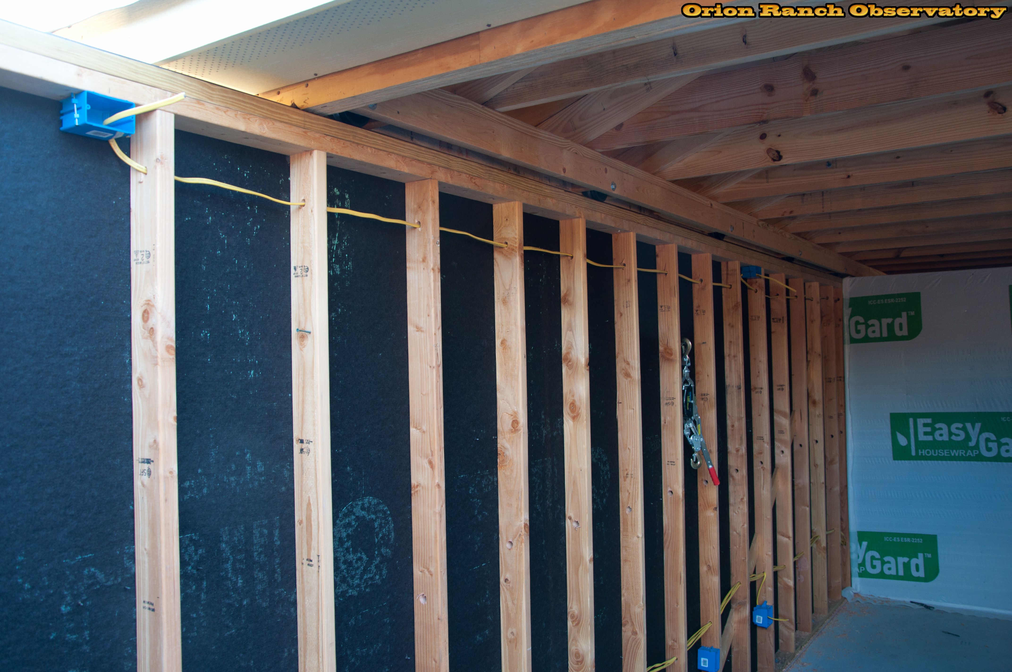More electrical along the West and South wall of the observatory. Includes two circuits for equipment on the west wall, the previous south pier and wall circuit, and the AC/fan circuit. Also includes the light circuit from the East wall.