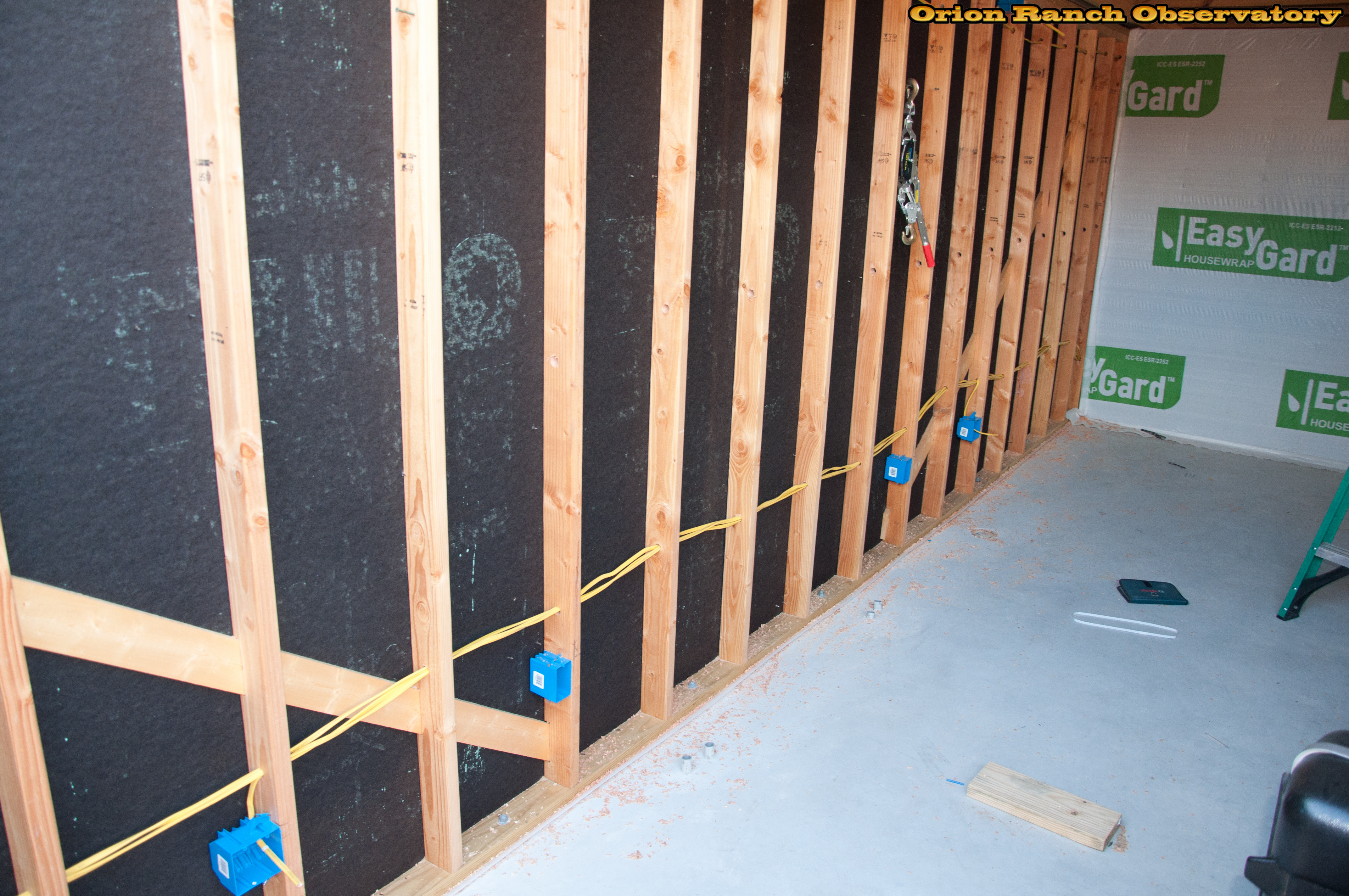 More electrical along the West and South wall of the observatory. Includes two circuits for equipment on the west wall, the previous south pier and wall circuit, and the AC/fan circuit. Also includes the light circuit from the East wall.