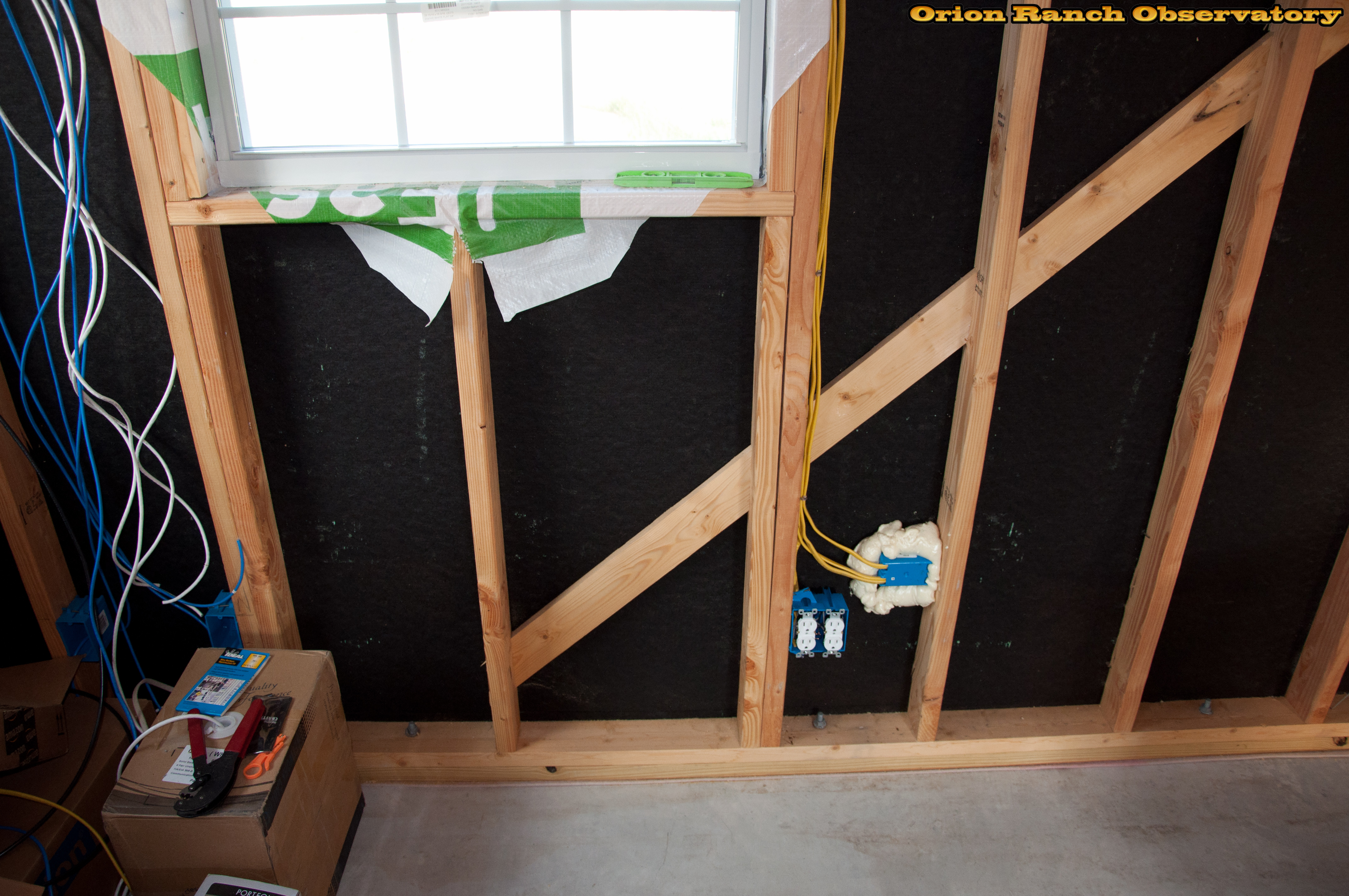 Putting in the outlets for where all teh electronics will go in the warm room, including PC(s), cell booster, etc.
