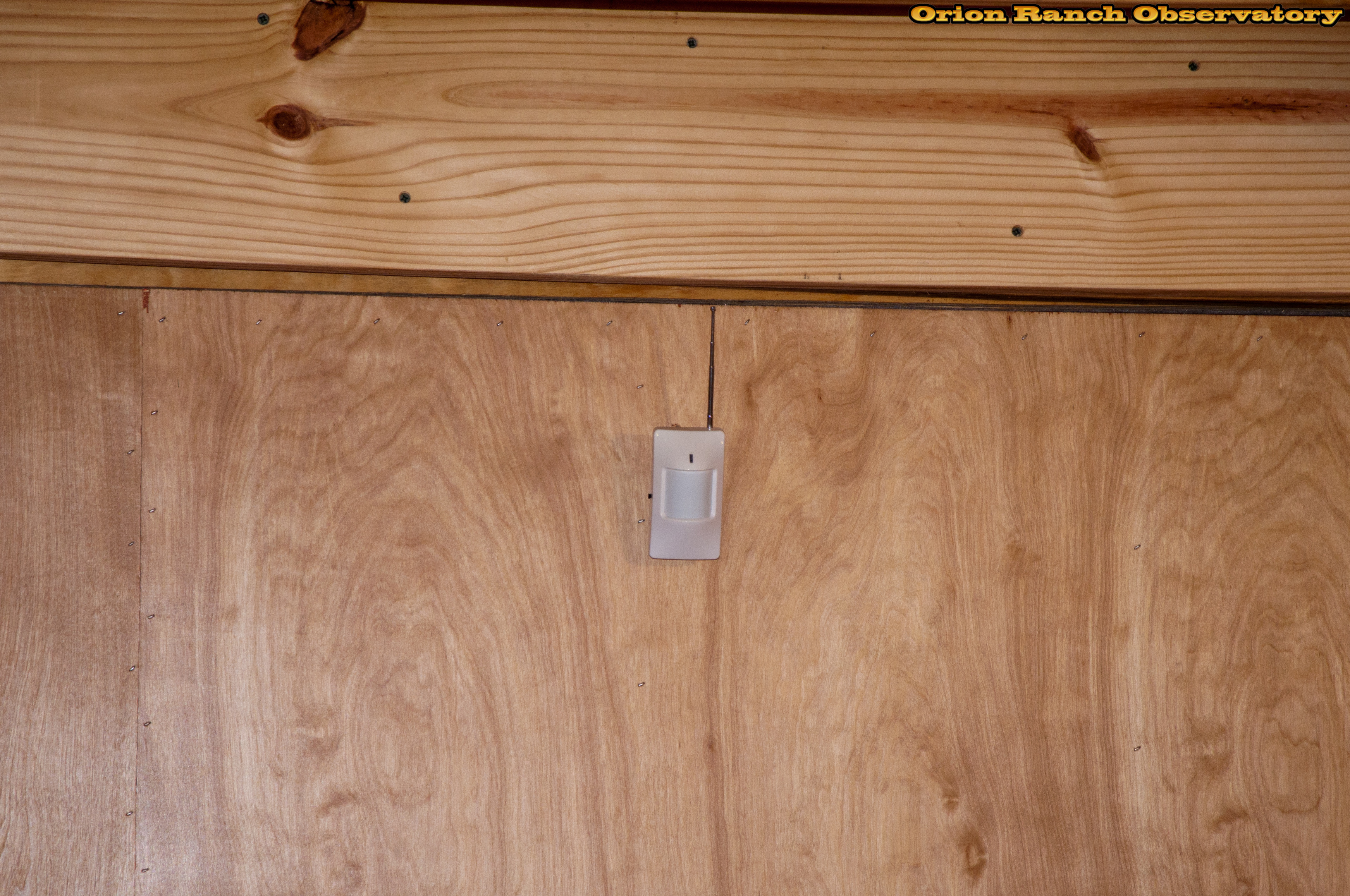 Alarm motion sensors installed on either side of the observatory. The downward angle of the fan appears to be enough that opening the roof won't trigger them. We'll have to see about what slewing the telescope does!