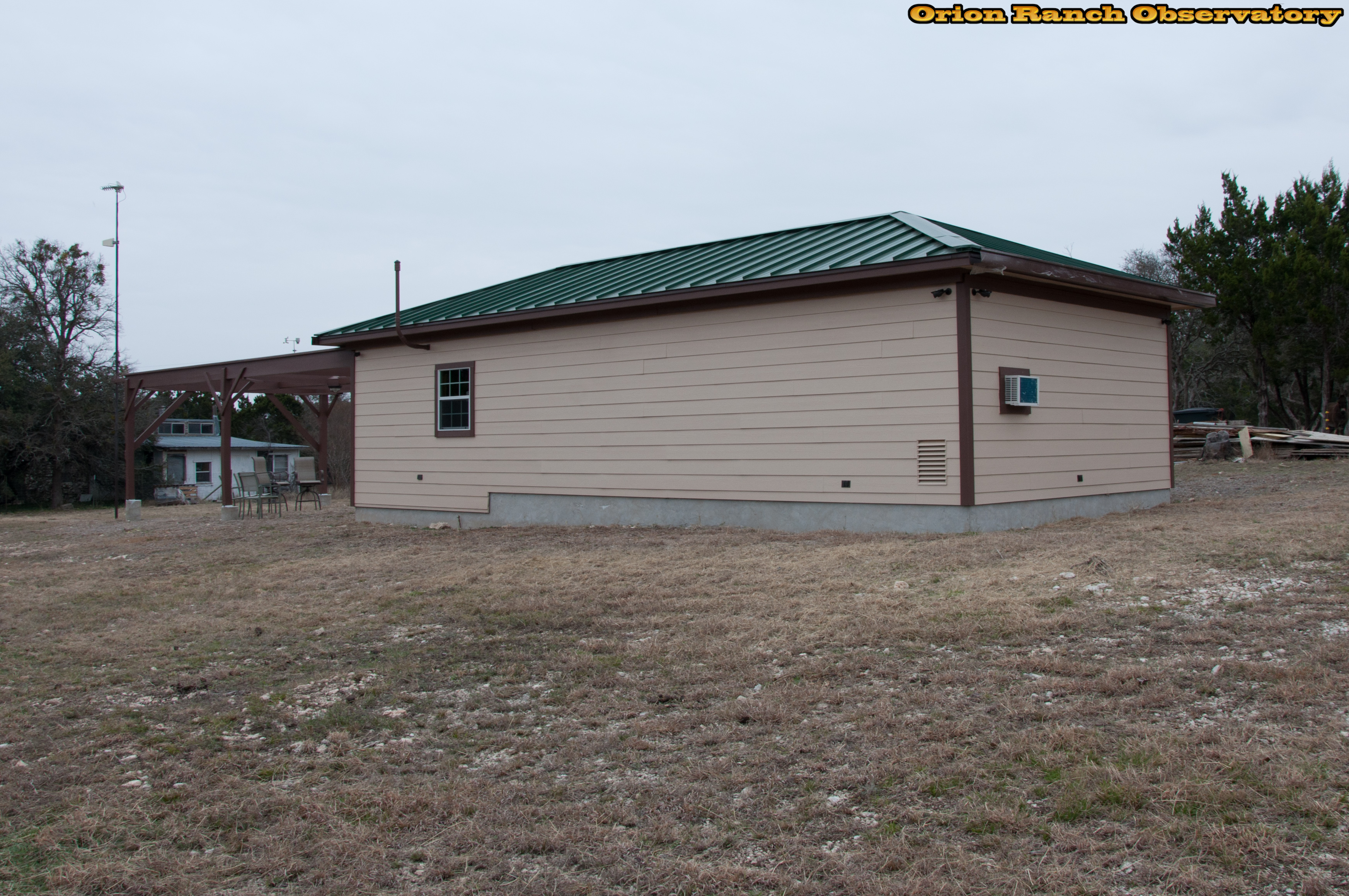 Cleaning up and mowing around the observatory and removing the excess house wrap from around the slab.