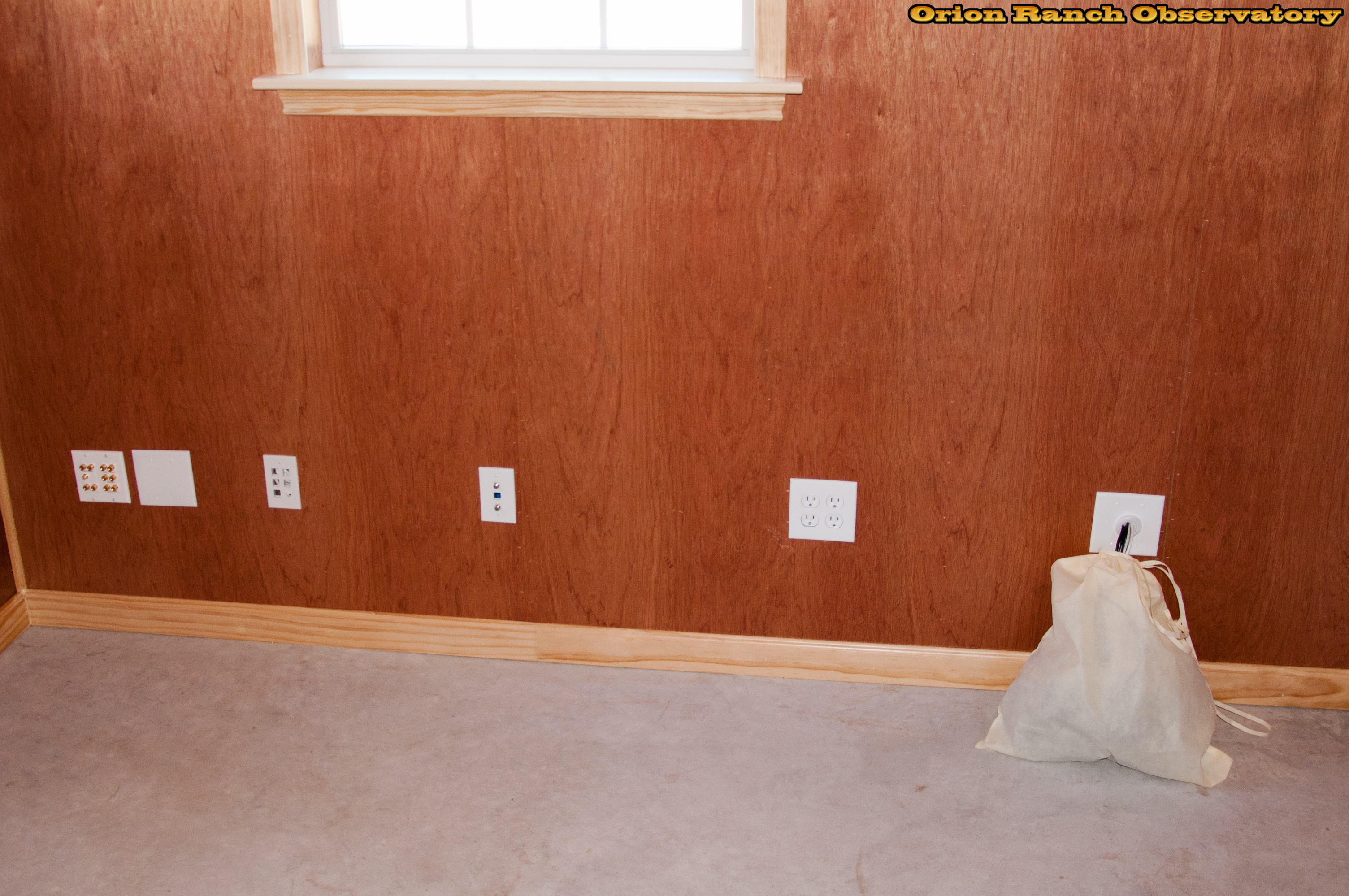 Finished north, east, and west walls with outlet plates installed. Still have some work to do on network keystones, etc. but that may only happen as needed.