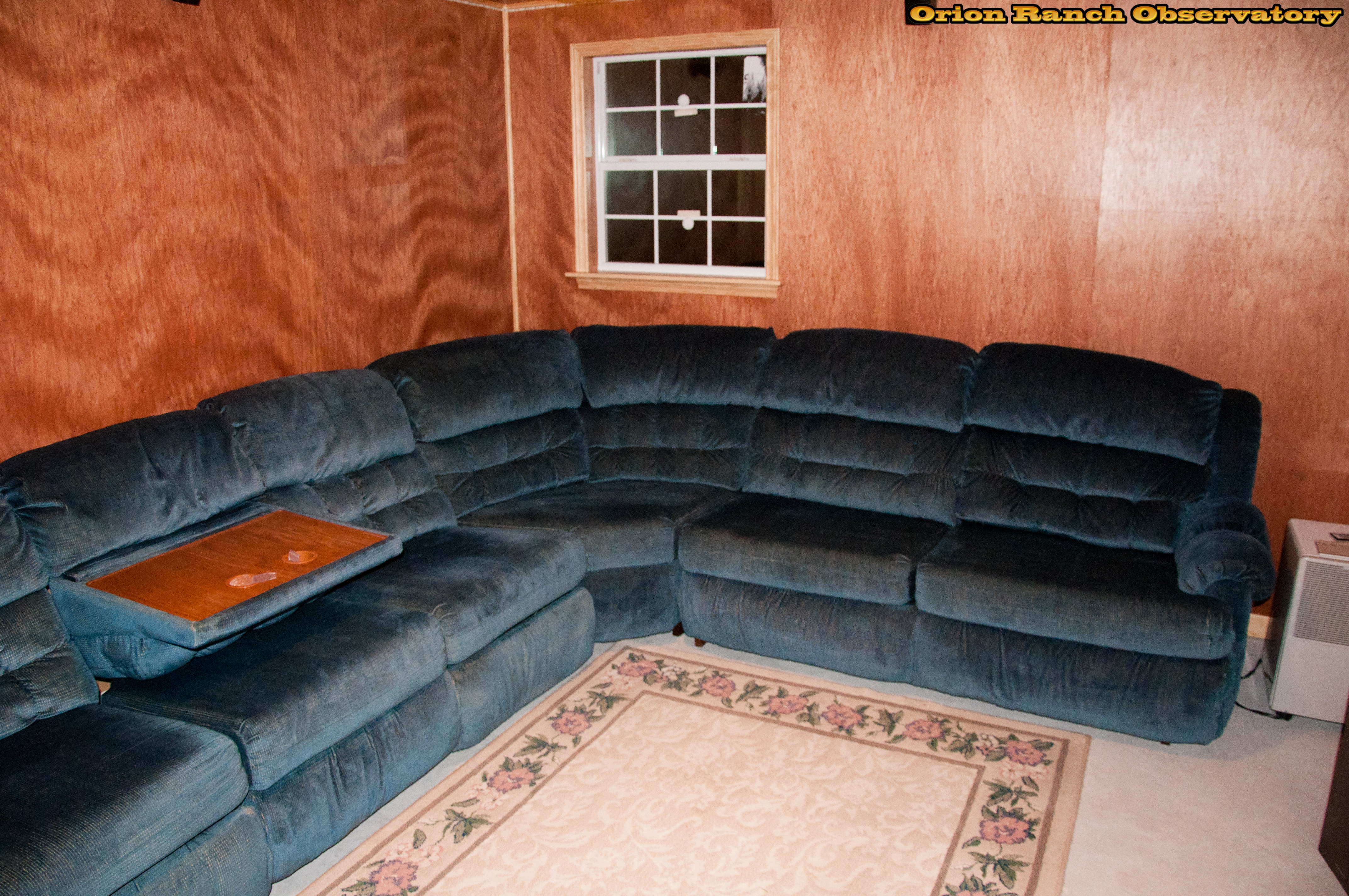 The rest of the sectional installed along with an old throw rug.