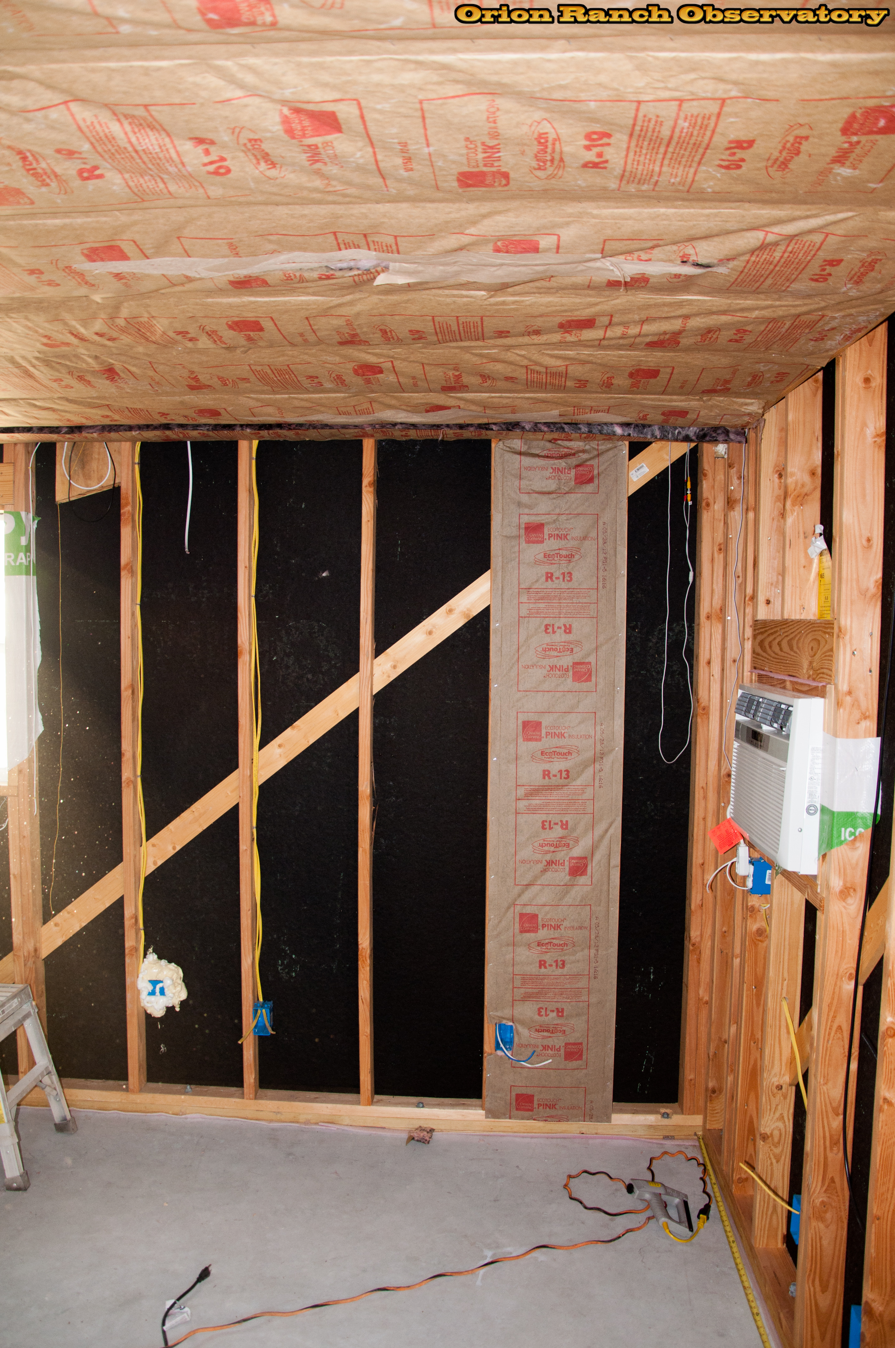 First piece of insulation in the wall.