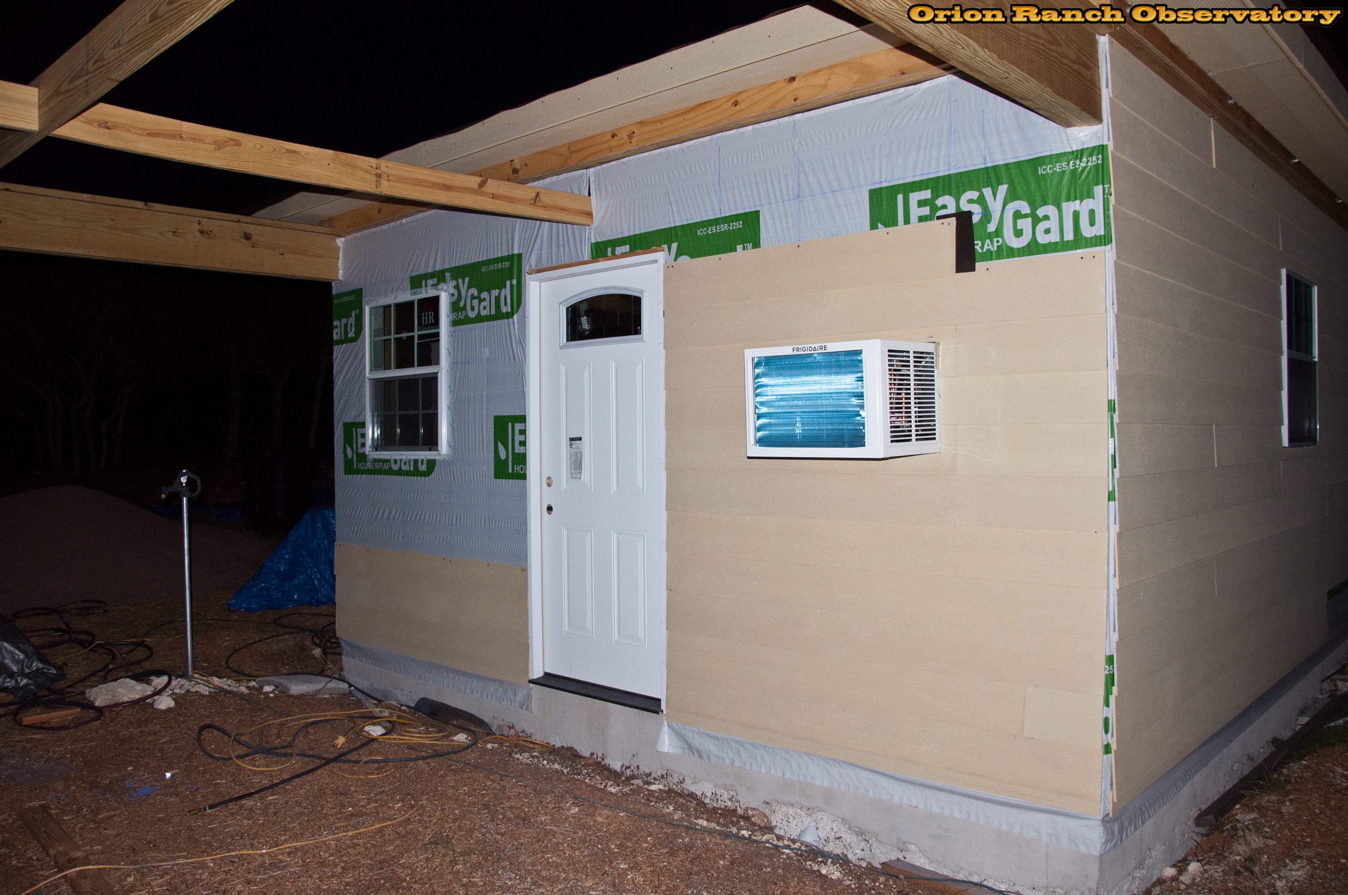 Part way done with the siding on the north wall before stopping to look for comet Pan-STARRS.