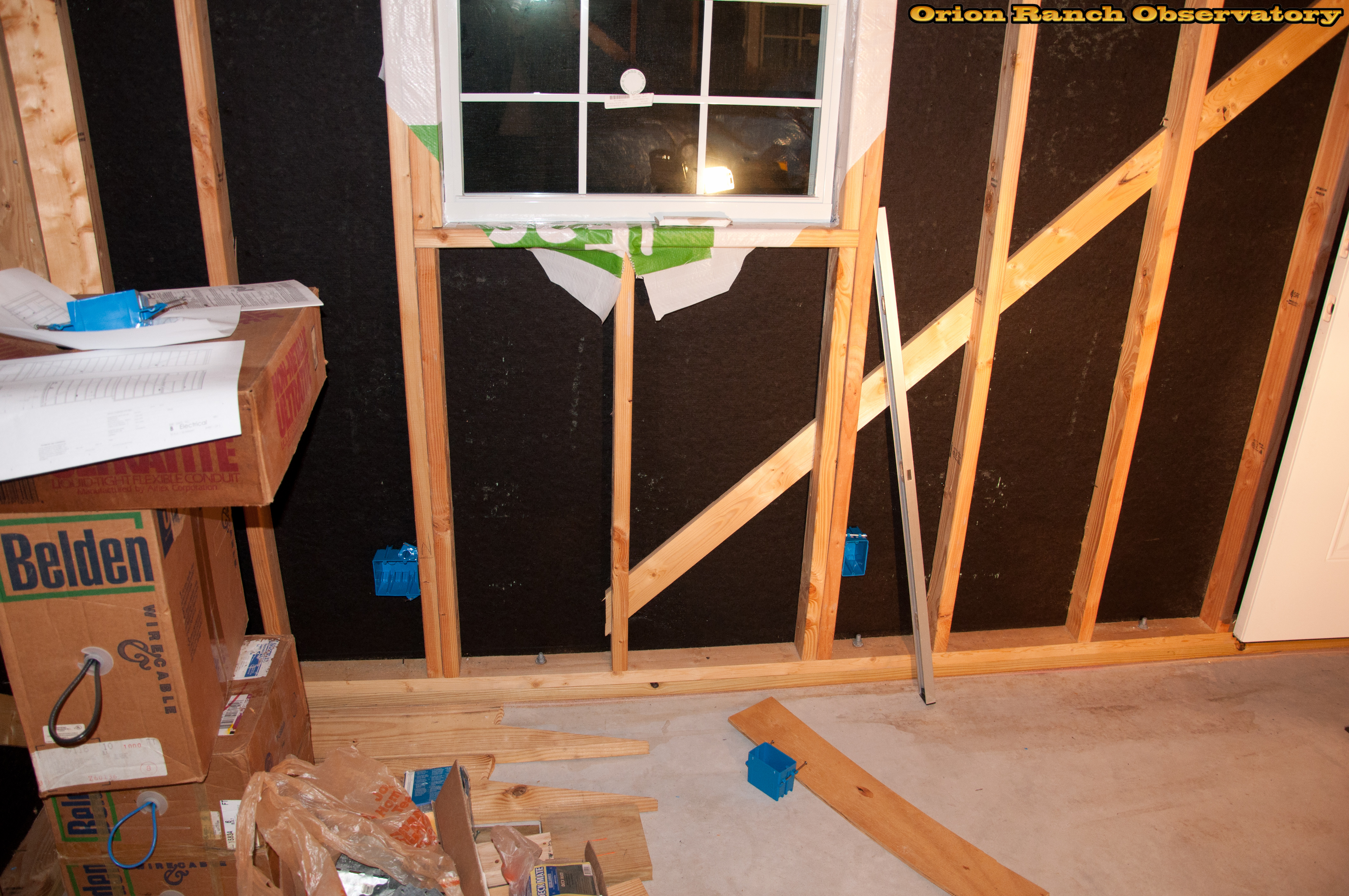 Installing electrical boxes for outlets, switches, and network connections in warm room.