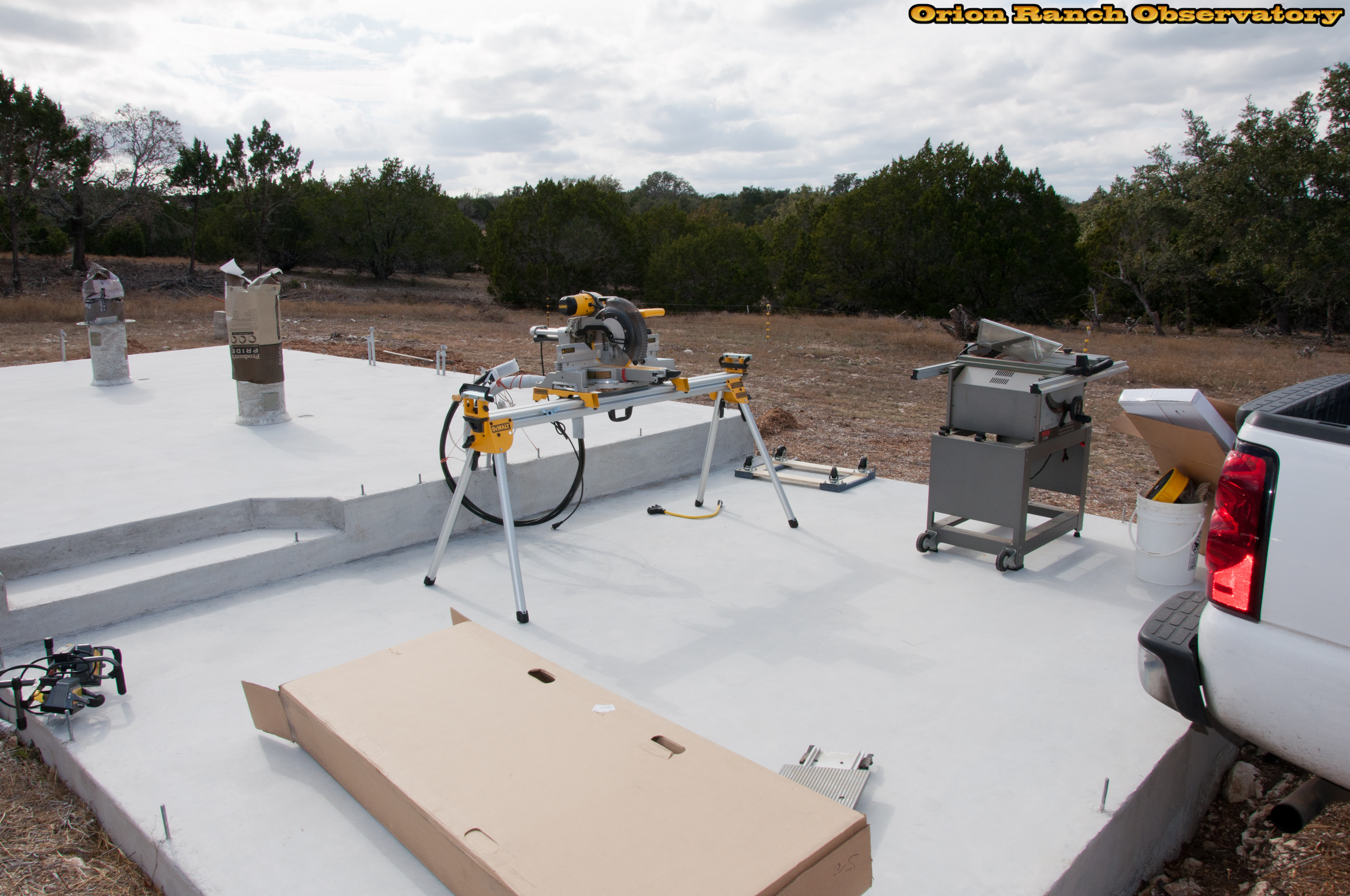 Setting up the saws and other tools.