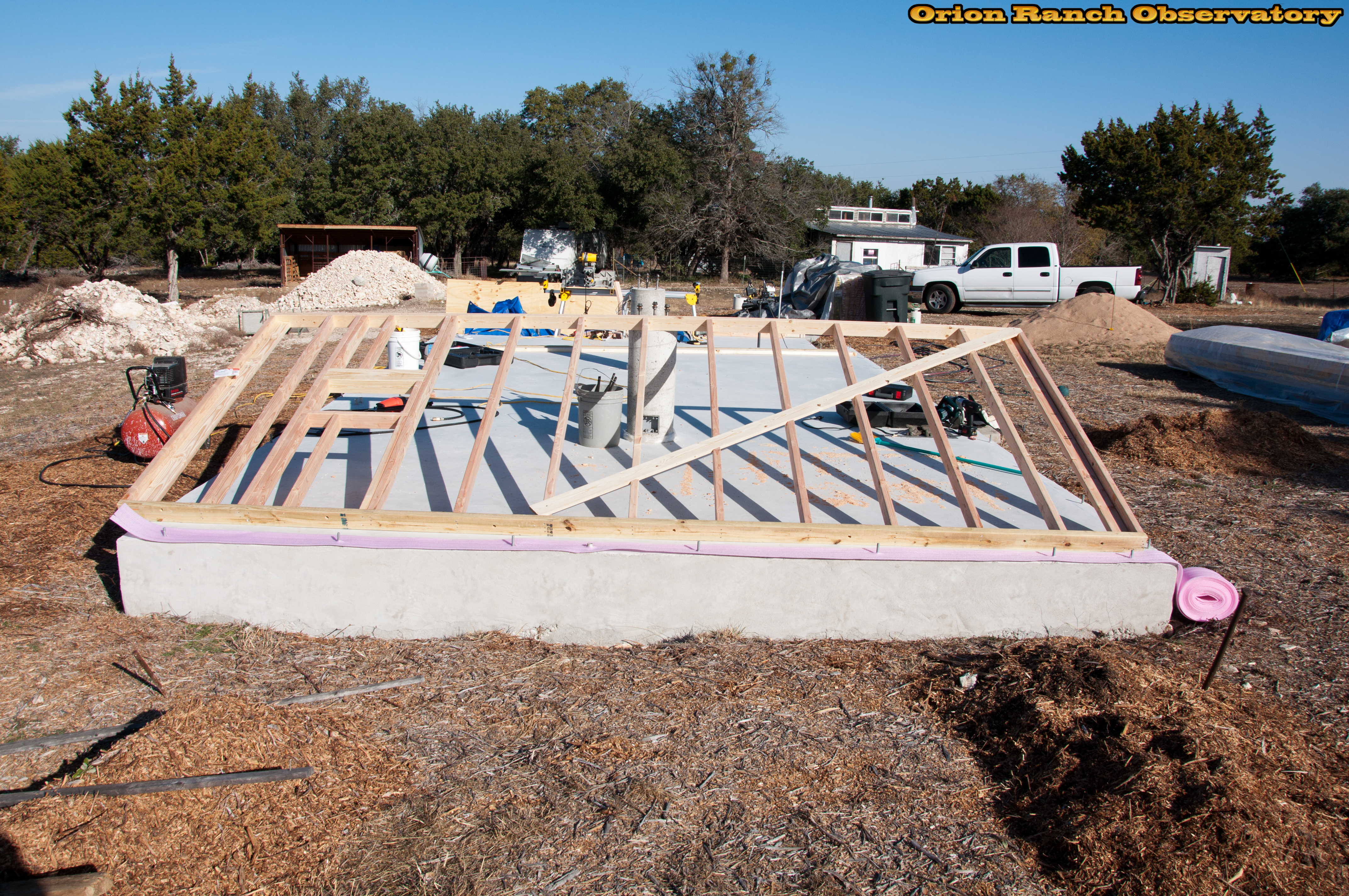 Standing up the first wall. Sill gasket is down and frame is braced.