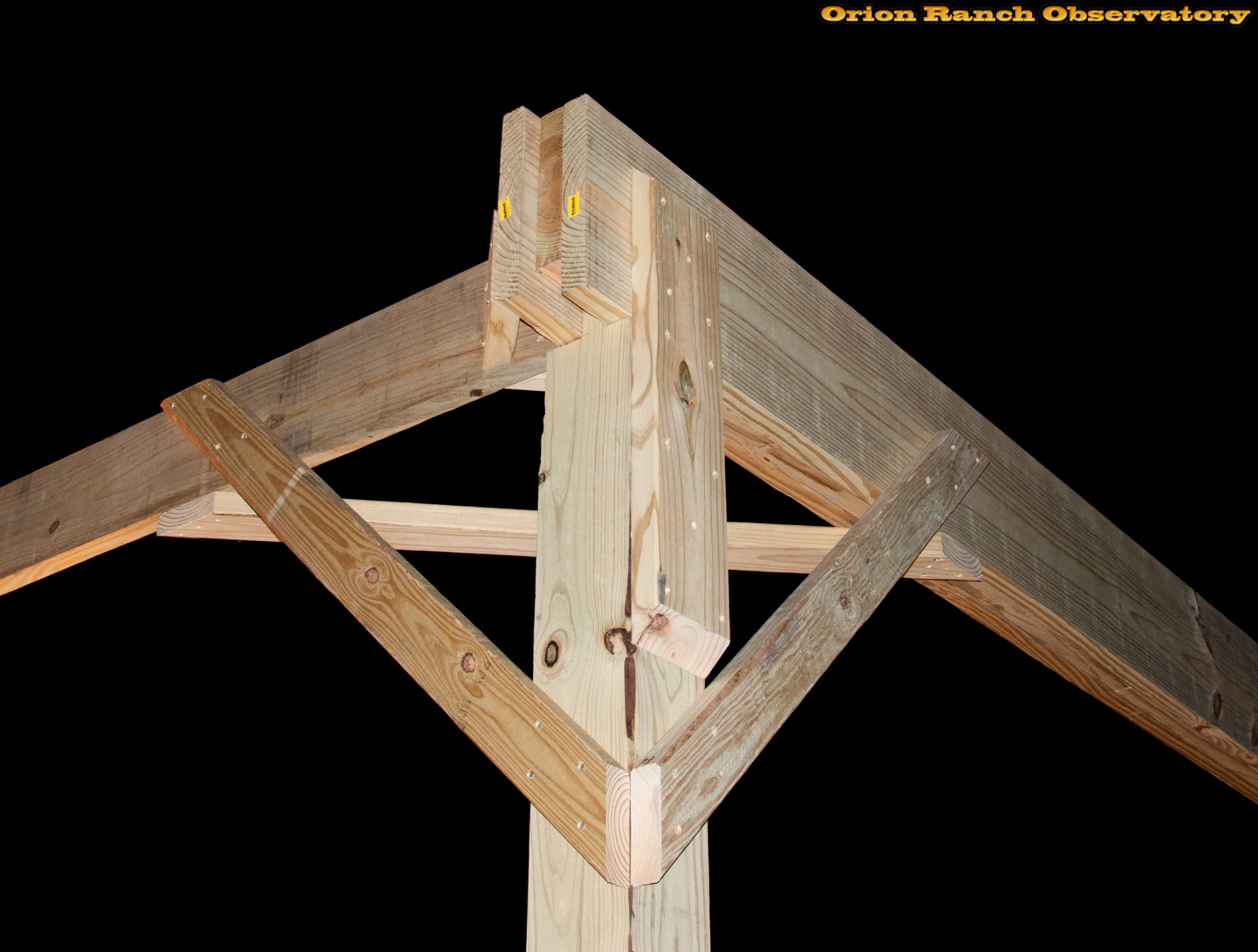 Detail of the corner brace showing the diagonals and the added tie strap to anchor the rail