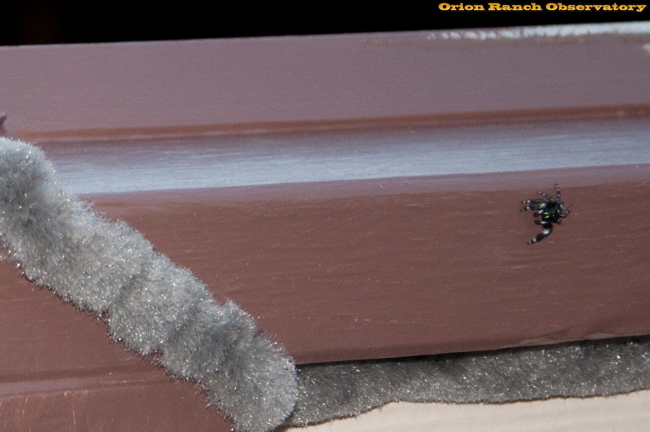 A spider is mocking me about trying to keep bugs out as he inspects my work!