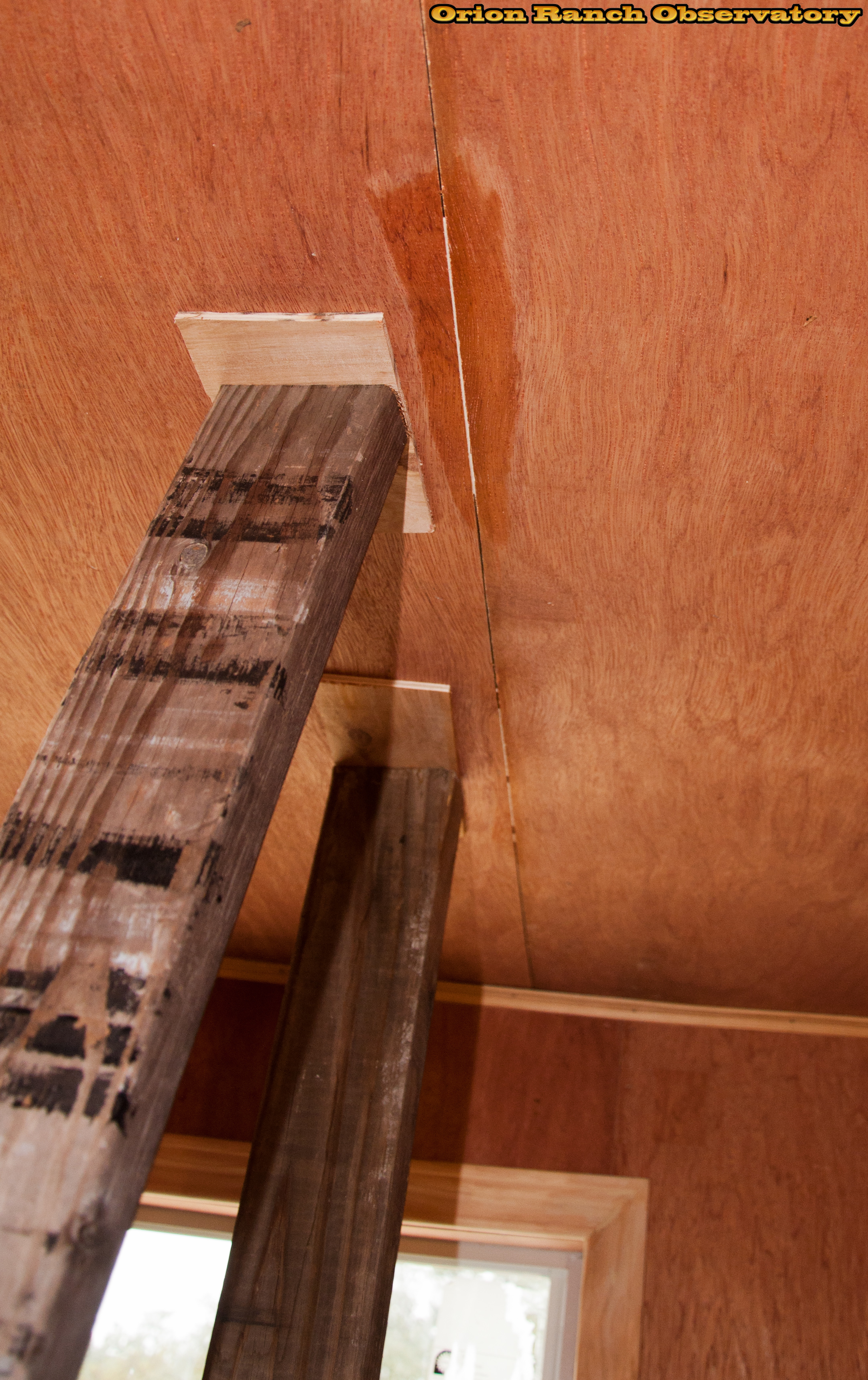 Gluing the edges of the ceiling panels together to keep them from bowing differently and introducing gaps.
