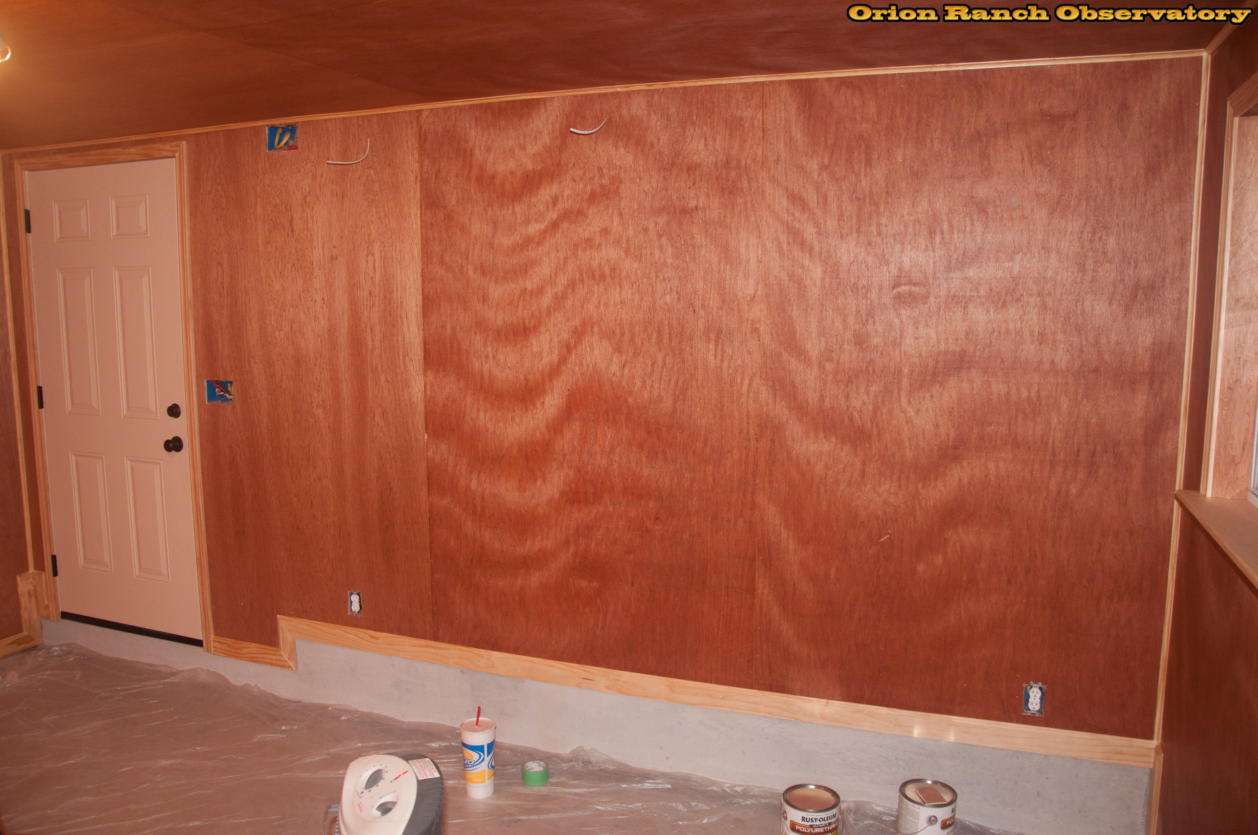 First coat of polyurethan going up. Trying to show some detail of the sealed pine woodwork.