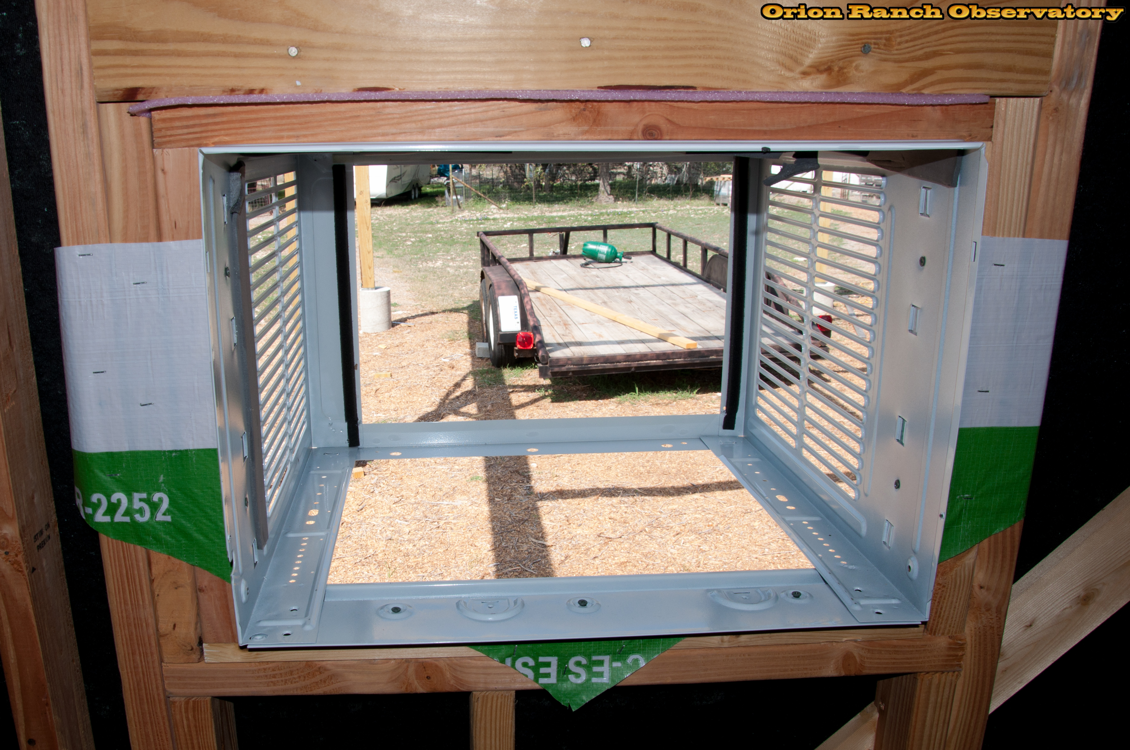 Installing the sleeve for the new air conditioner unit in the warm room wall.