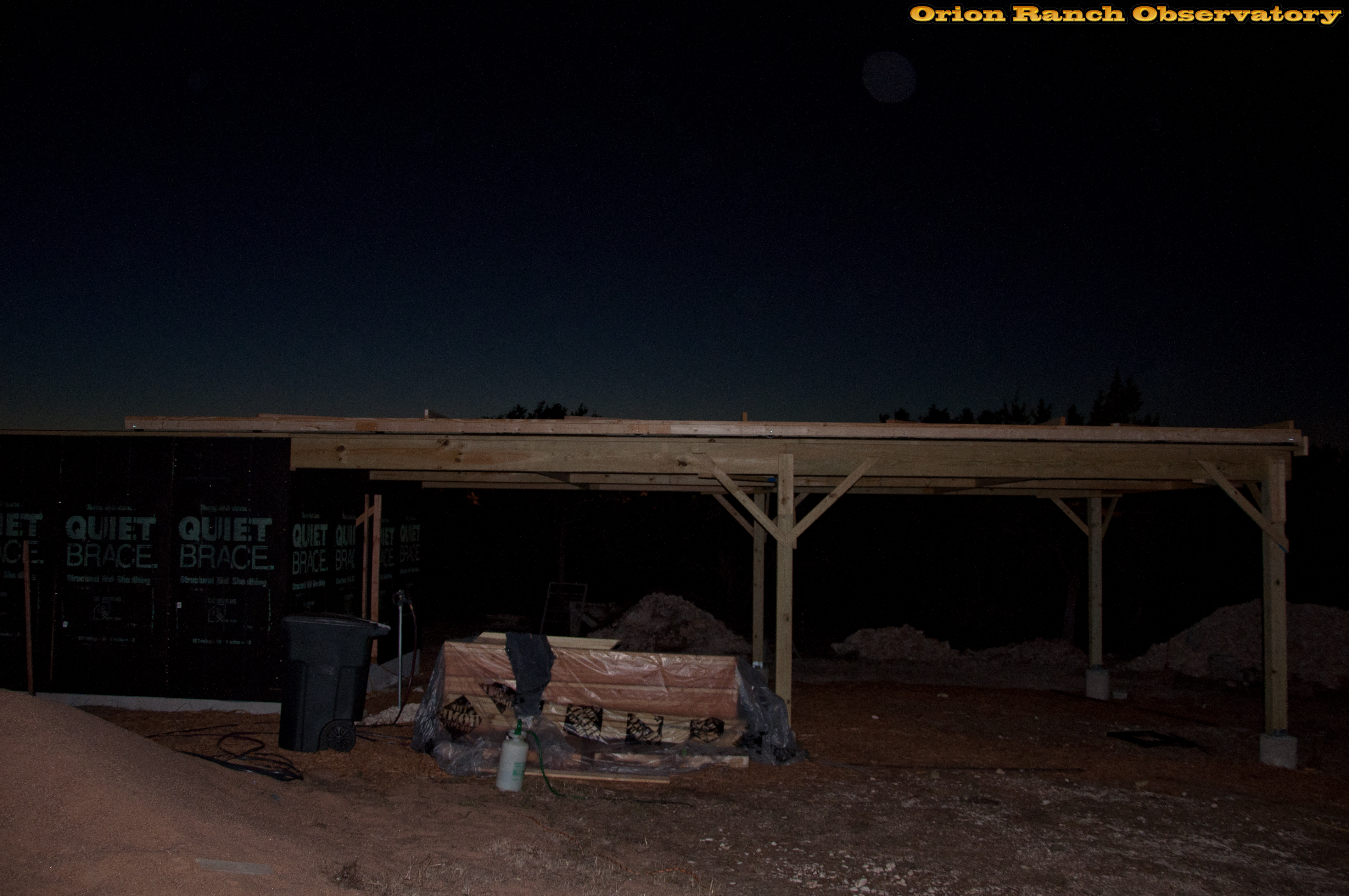 Roll-off side rails with temporary cross bracing shown in the maximum open position, which leaves about 5' of warm room roof exposed.