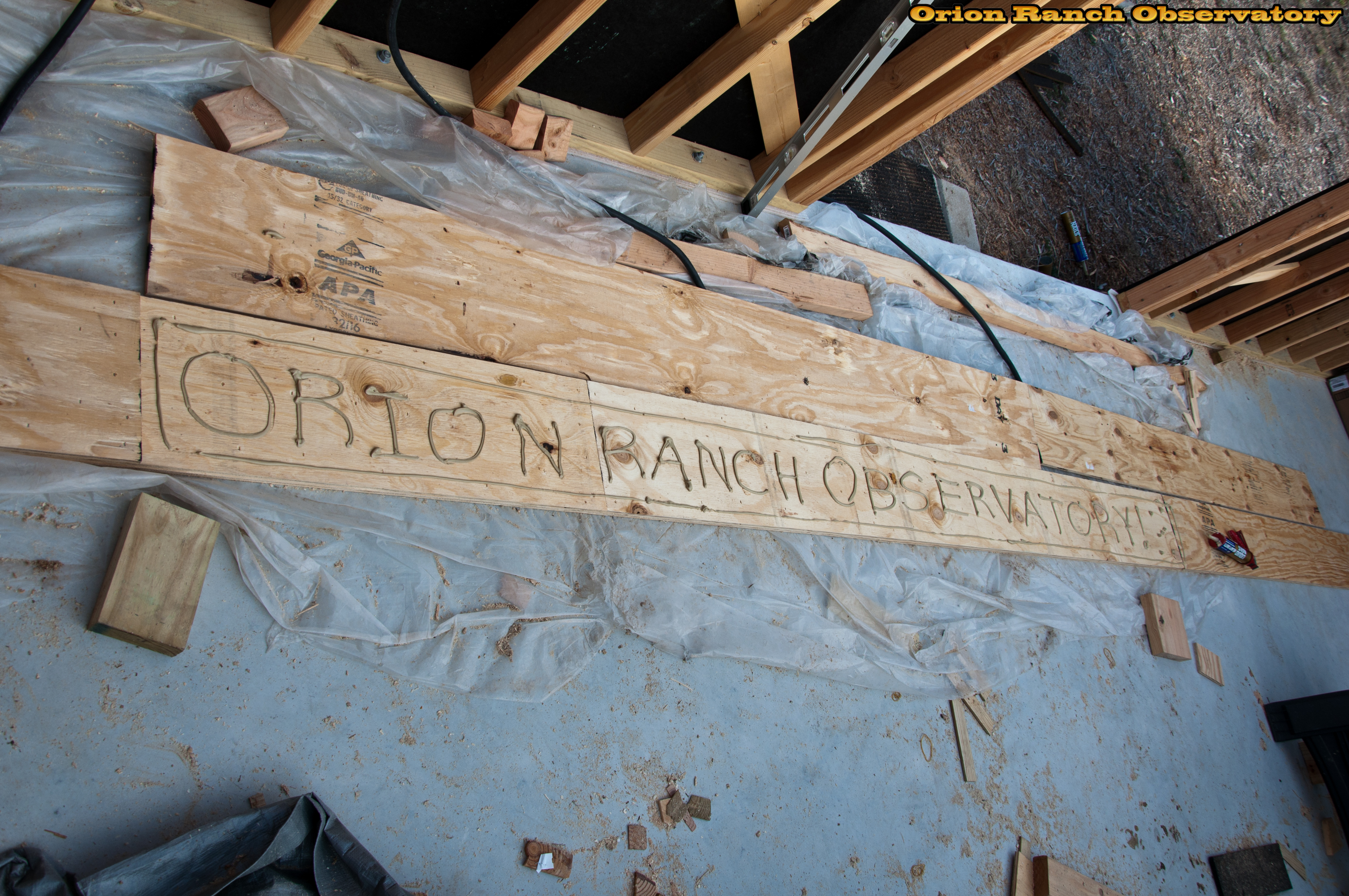 Working on the 22 foot long laminated beam for the ridge rafter. Embedding a signature!