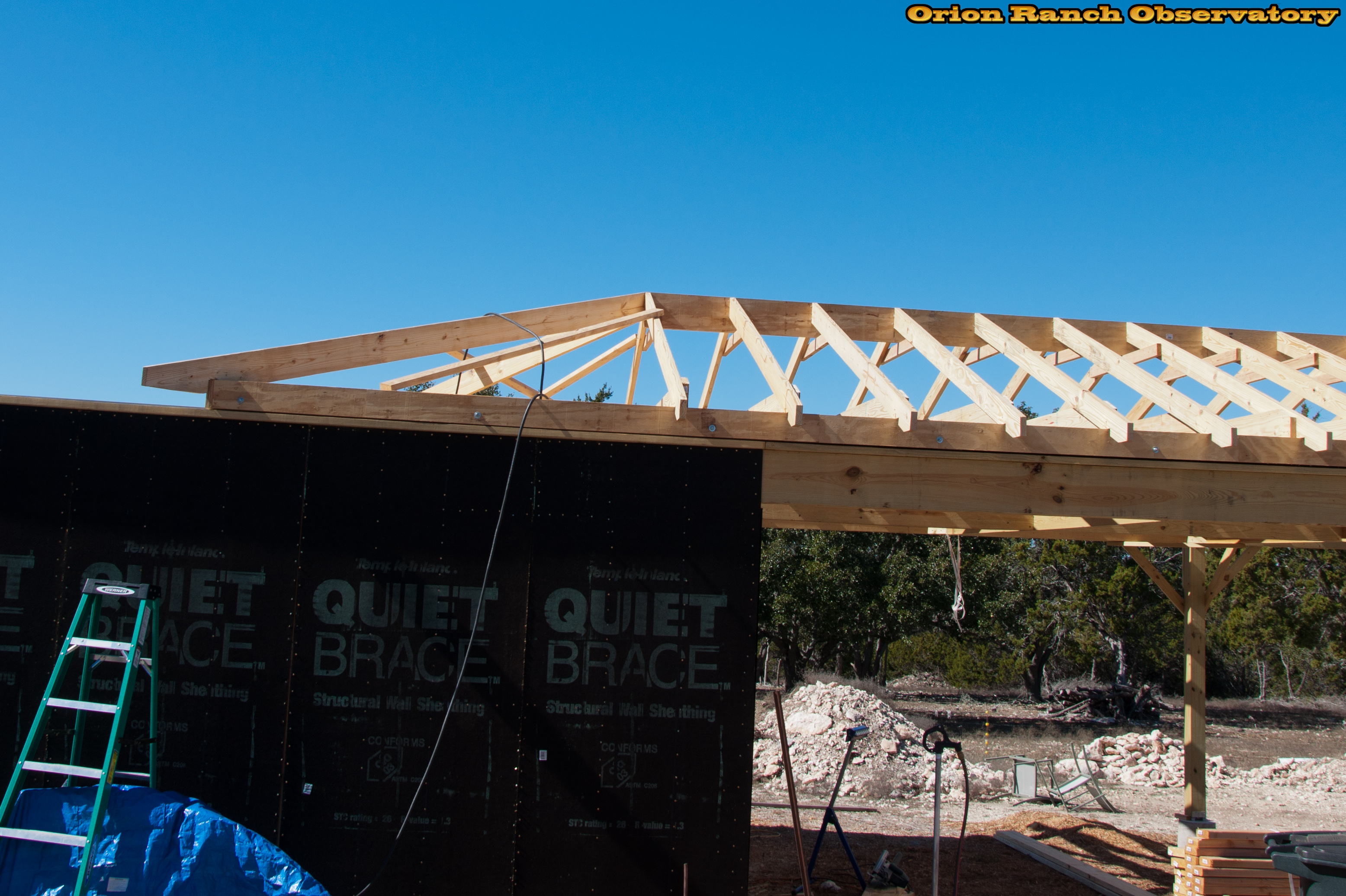 The first two hip rafters in place.