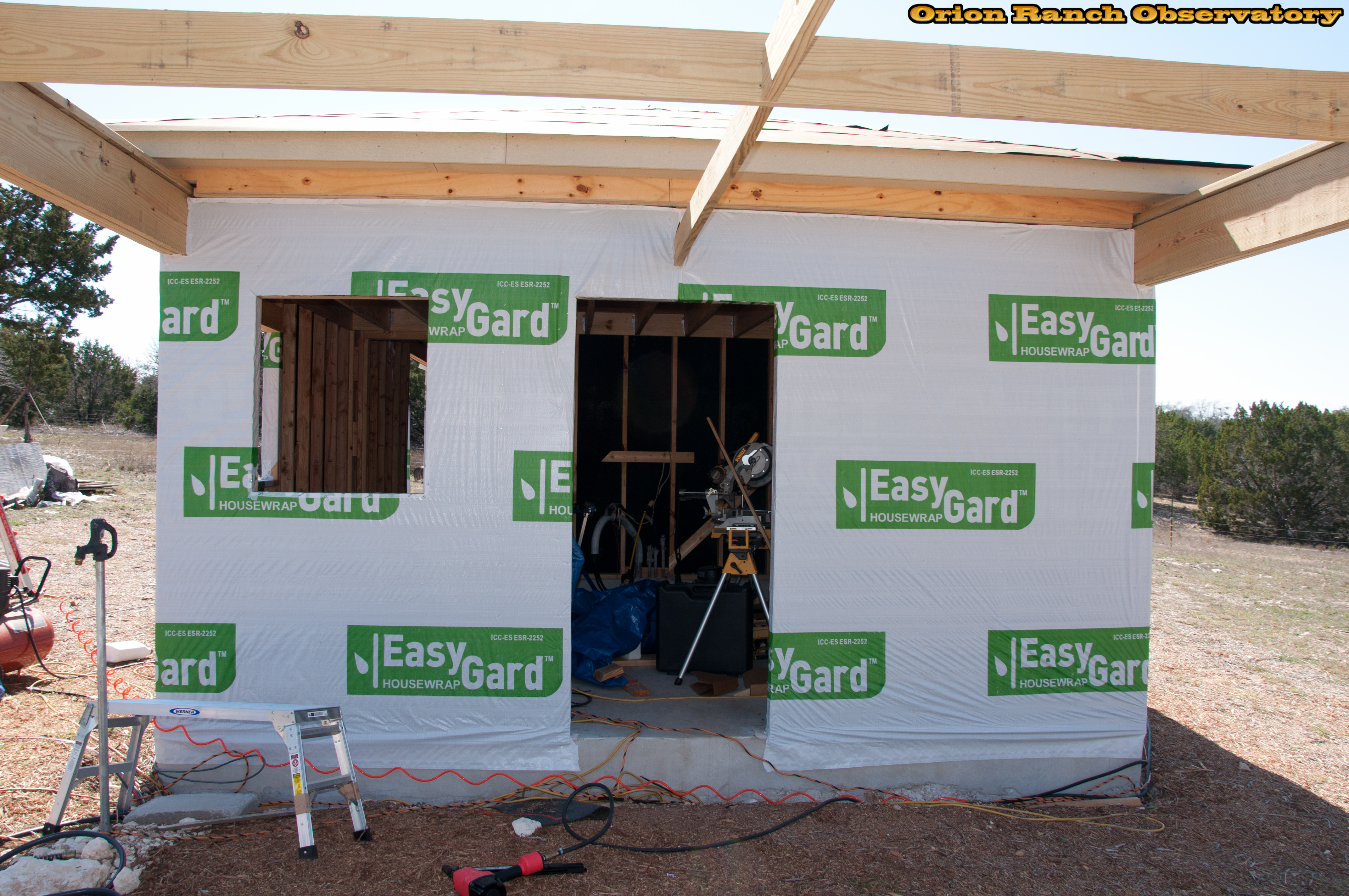 Prepped window and door openings showing treatment of house wrap and flashing tape.
