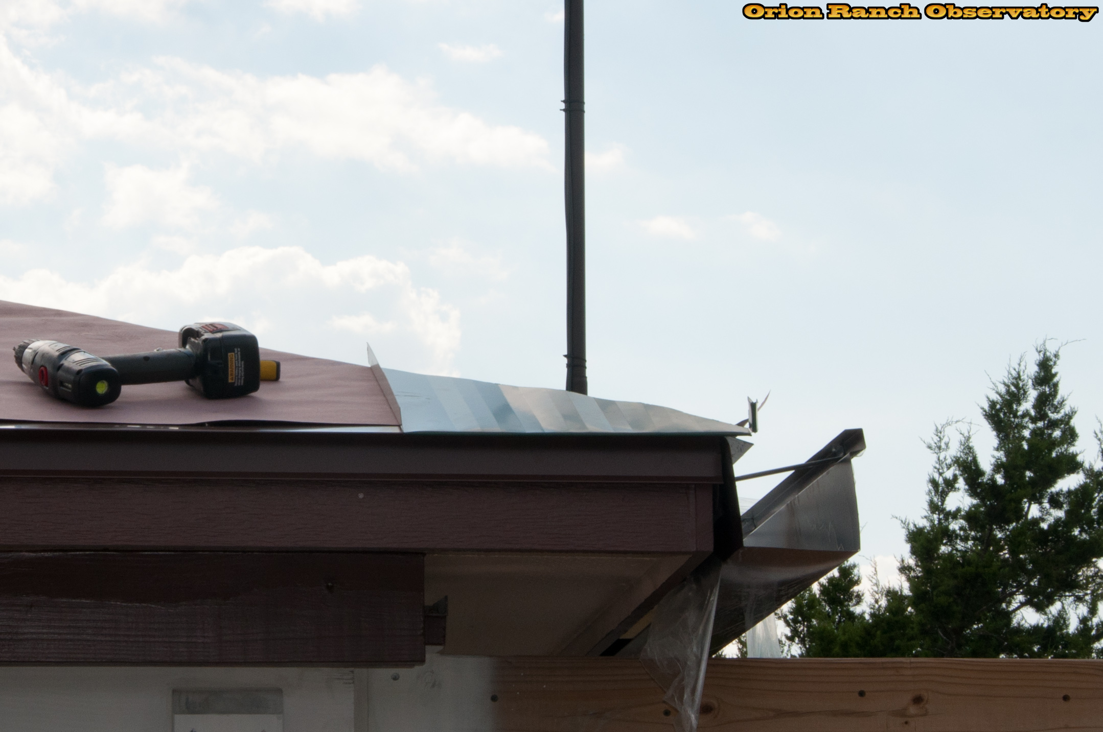 Fitting the first piece of roofing material.