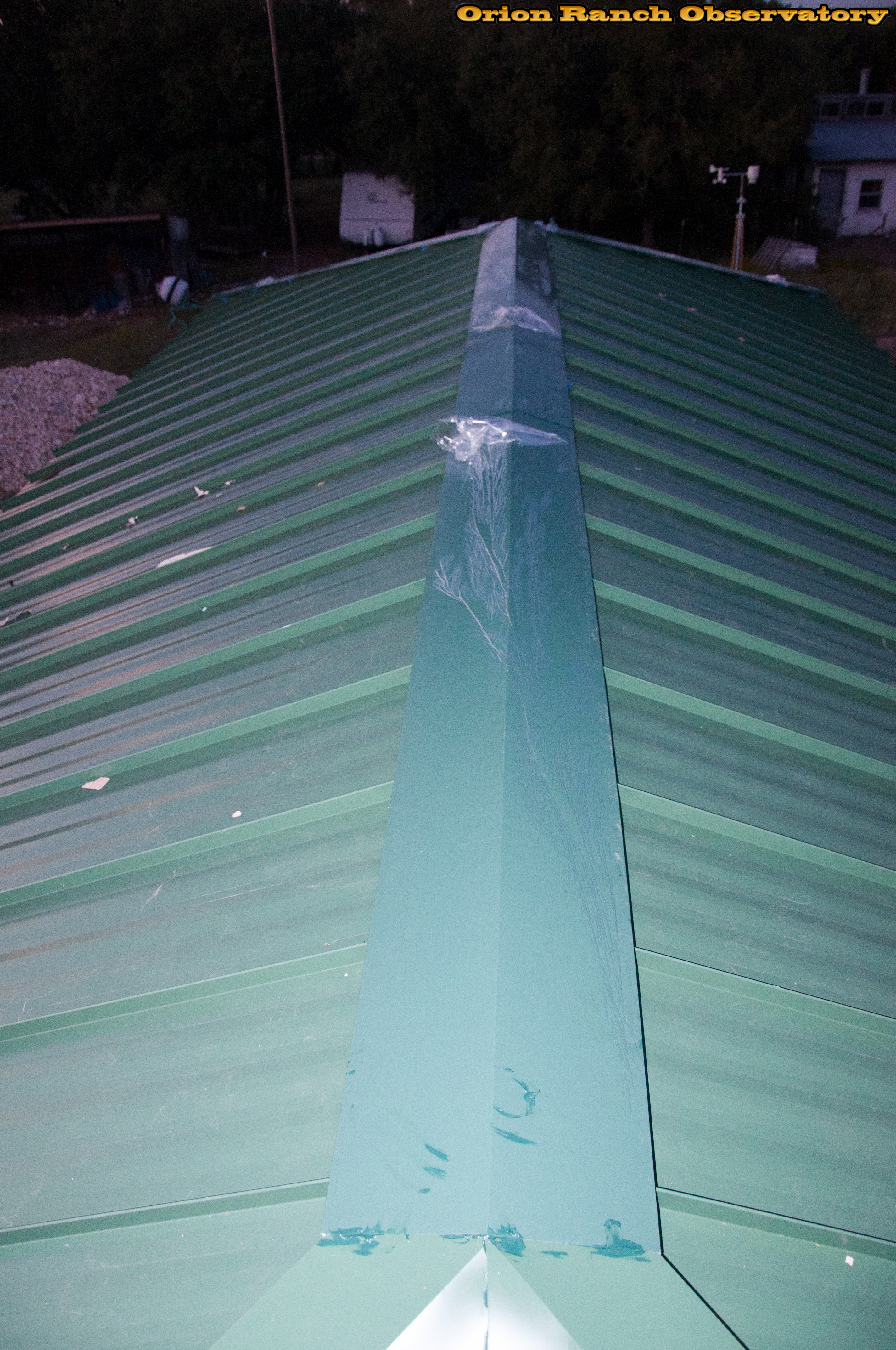 Finished snapping on the ridge caps (what a pain!) as the sun sets.