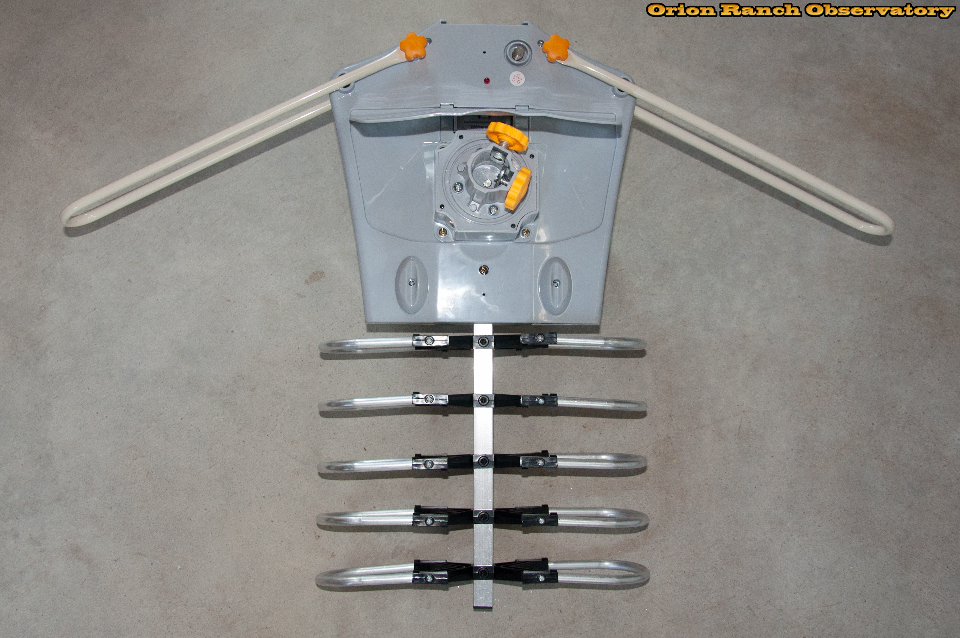 Amplified HDTV antenna with drive motor for changing orientation. All of those front elements are totally passive resonators and aren't actually connected to the real antenna. The amusing Chinese translation in the manual refers to them as "vibrators" instead of "resonators"!
