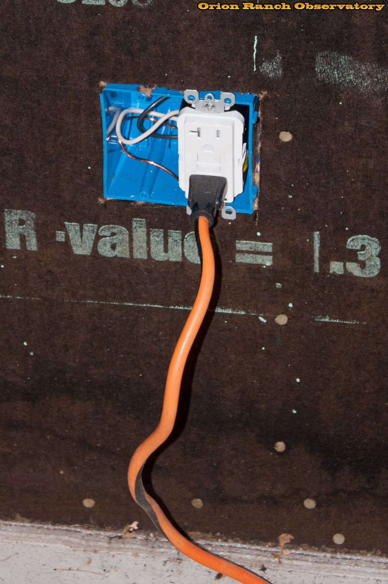 Added one outlet to clear the doorway of extension cords between the warm room and observatory.