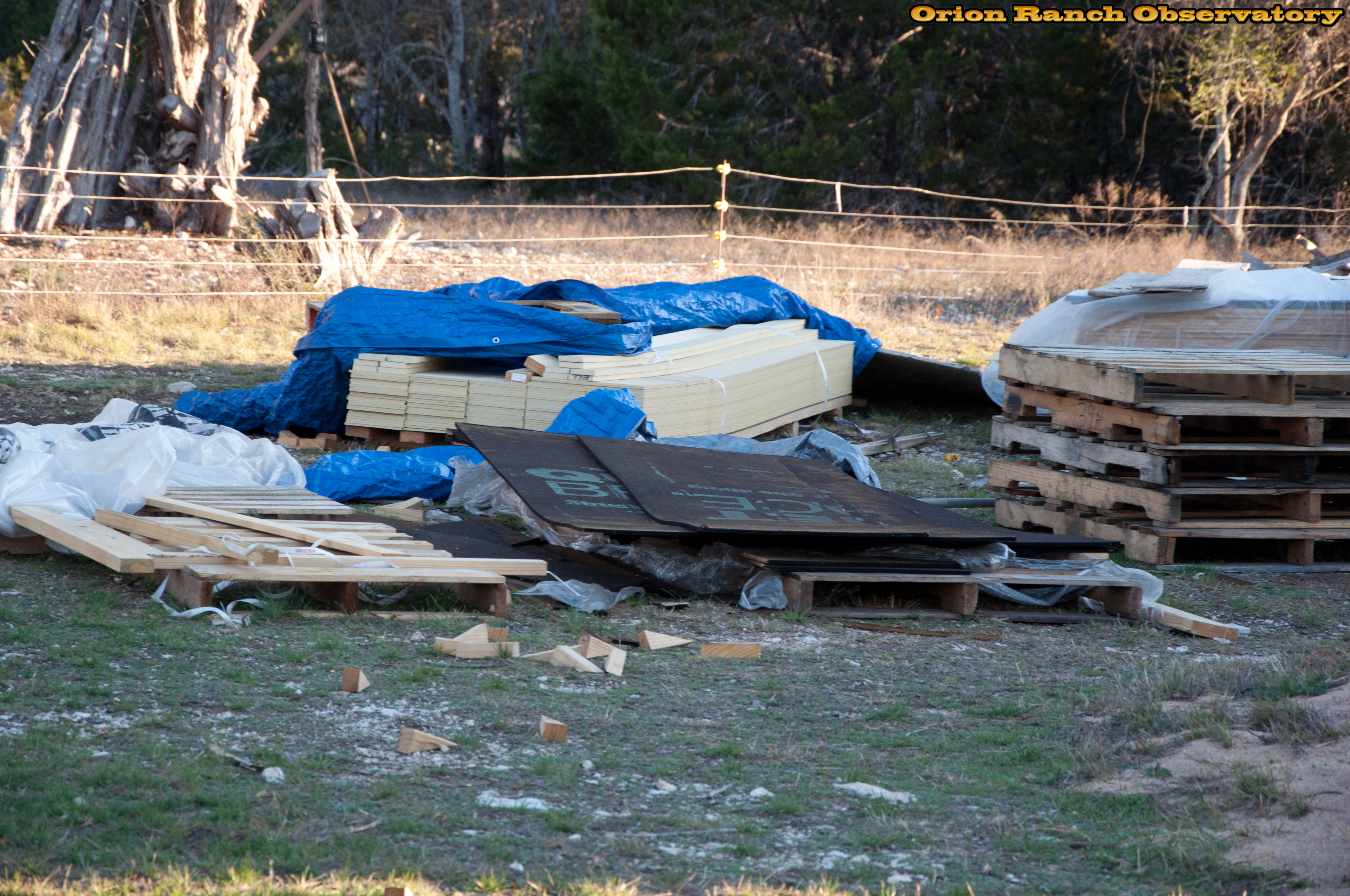 A major wind storm with gusts up to 70 MPH hit Central Texas. Made a mess of the piles of building supplies!