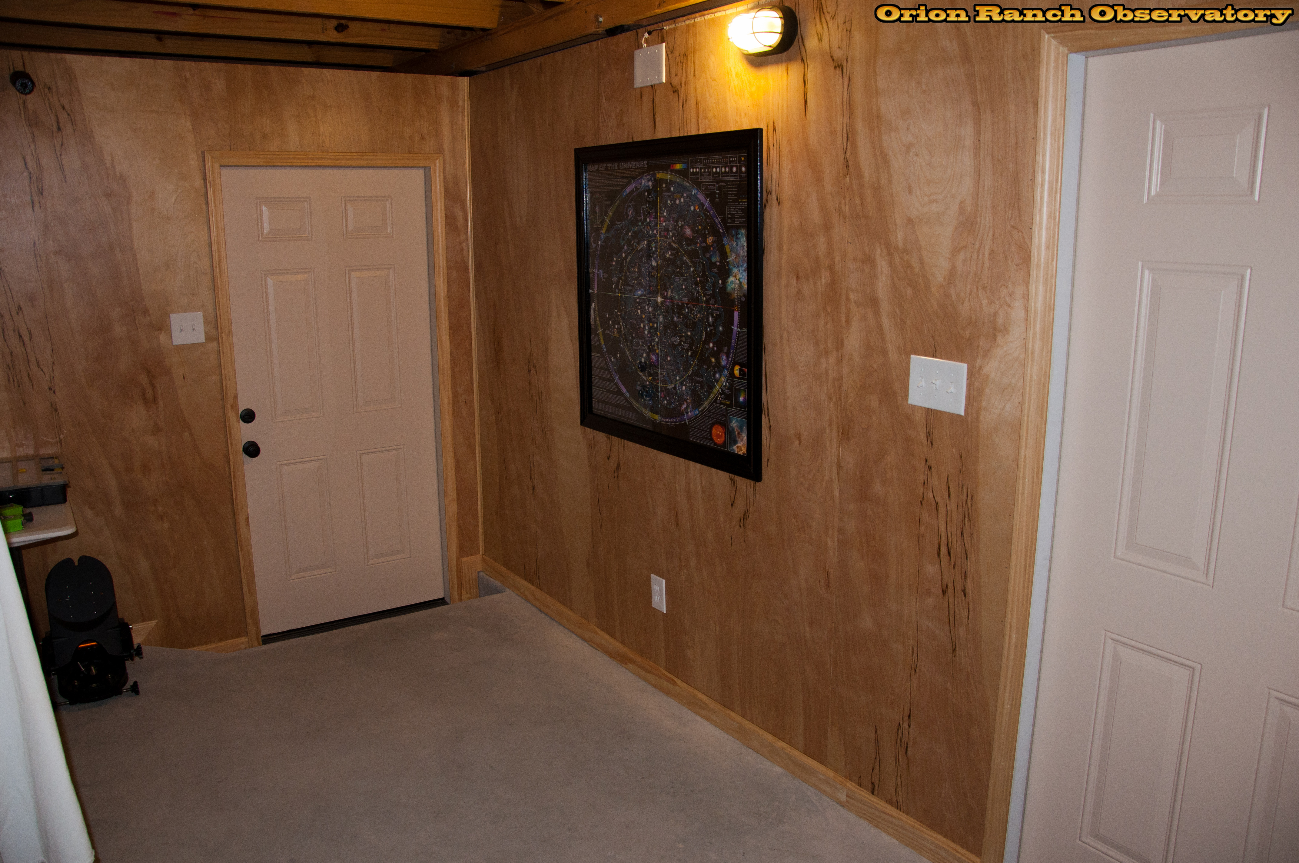 Hanging the Map of the Universe poster on the big open wall between observatory and warm room entrances.
