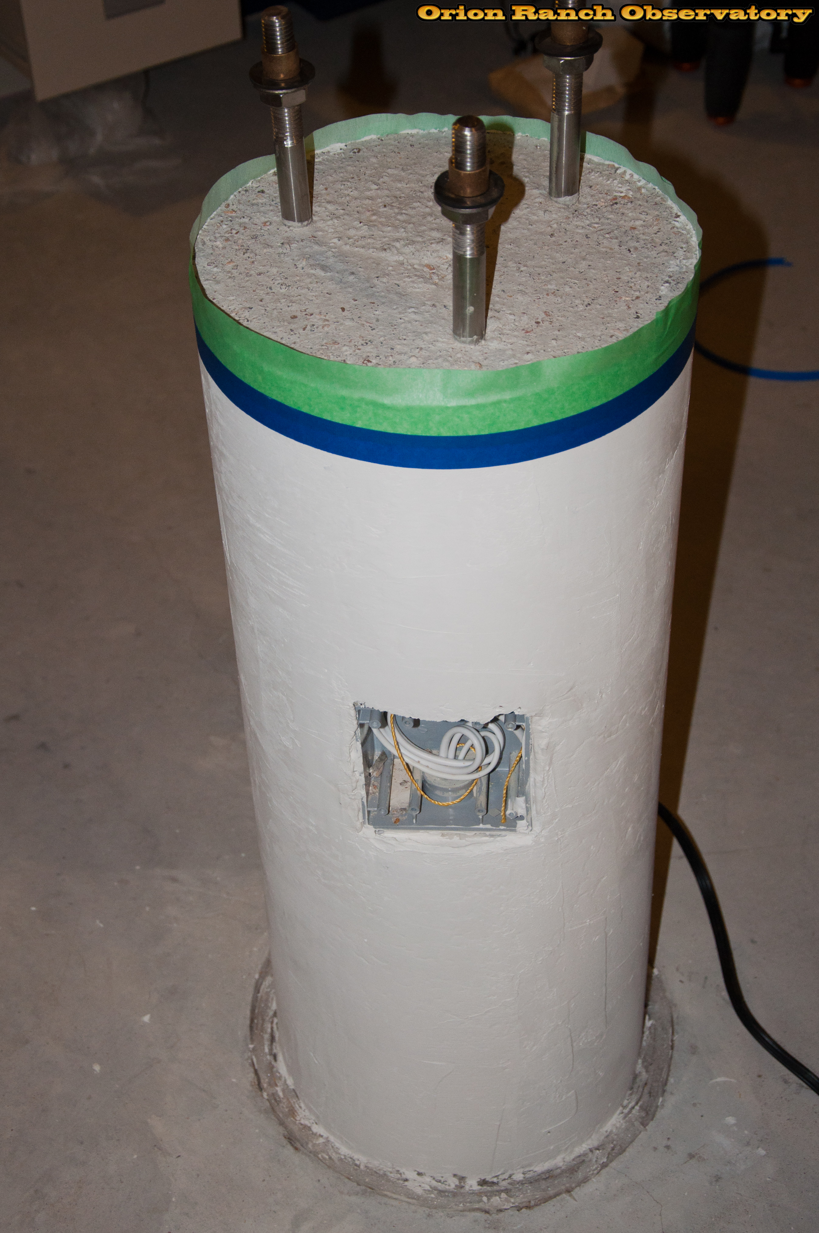 Taping a border around the top of the piers in preparation for adding a concreate top cap to each.