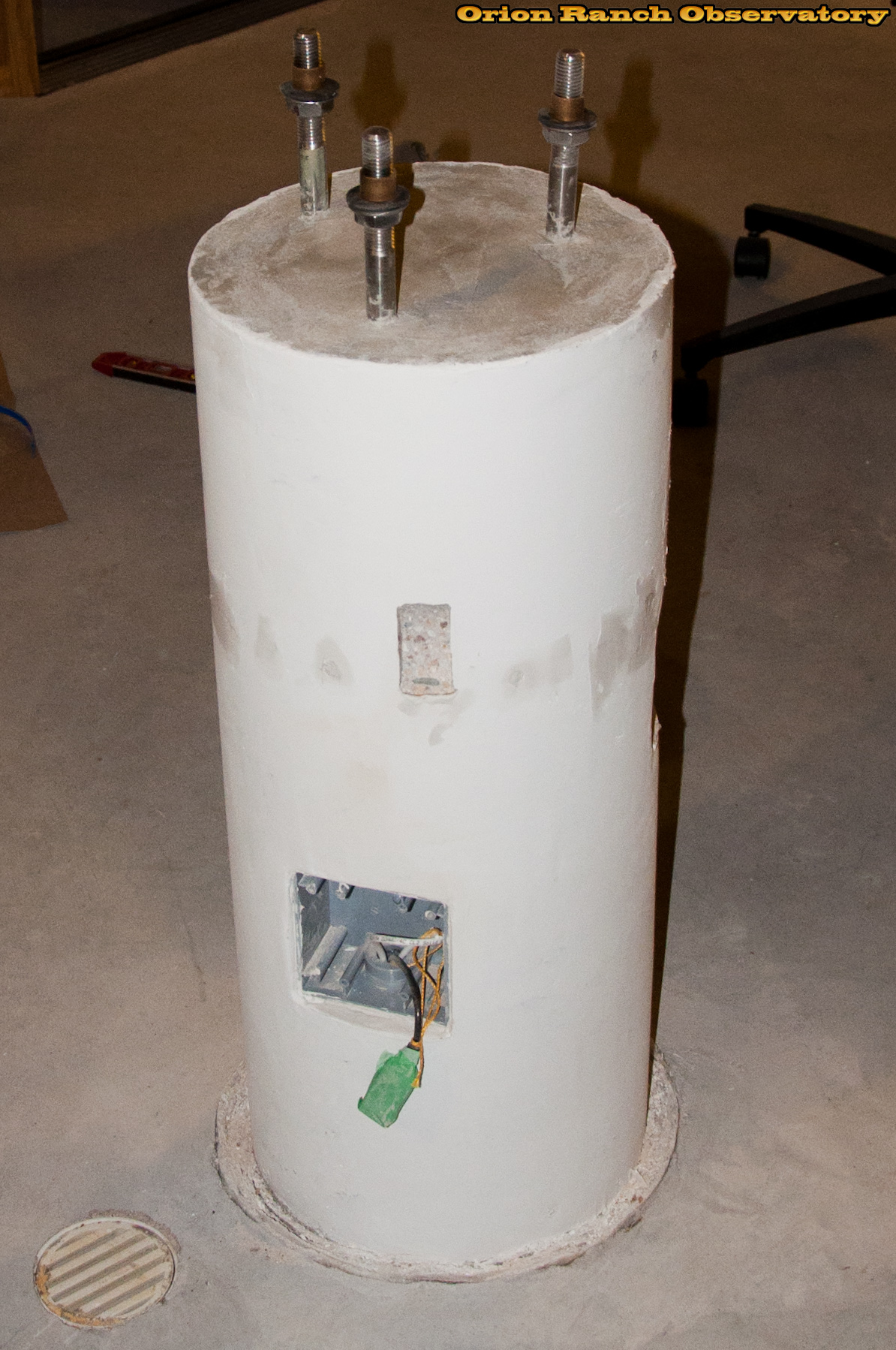 Cutting notches in the piers so that cables can go between the pier and eyepiece holder ring. The drilling and installing inserts for mounting the rings and finally patching over everything.