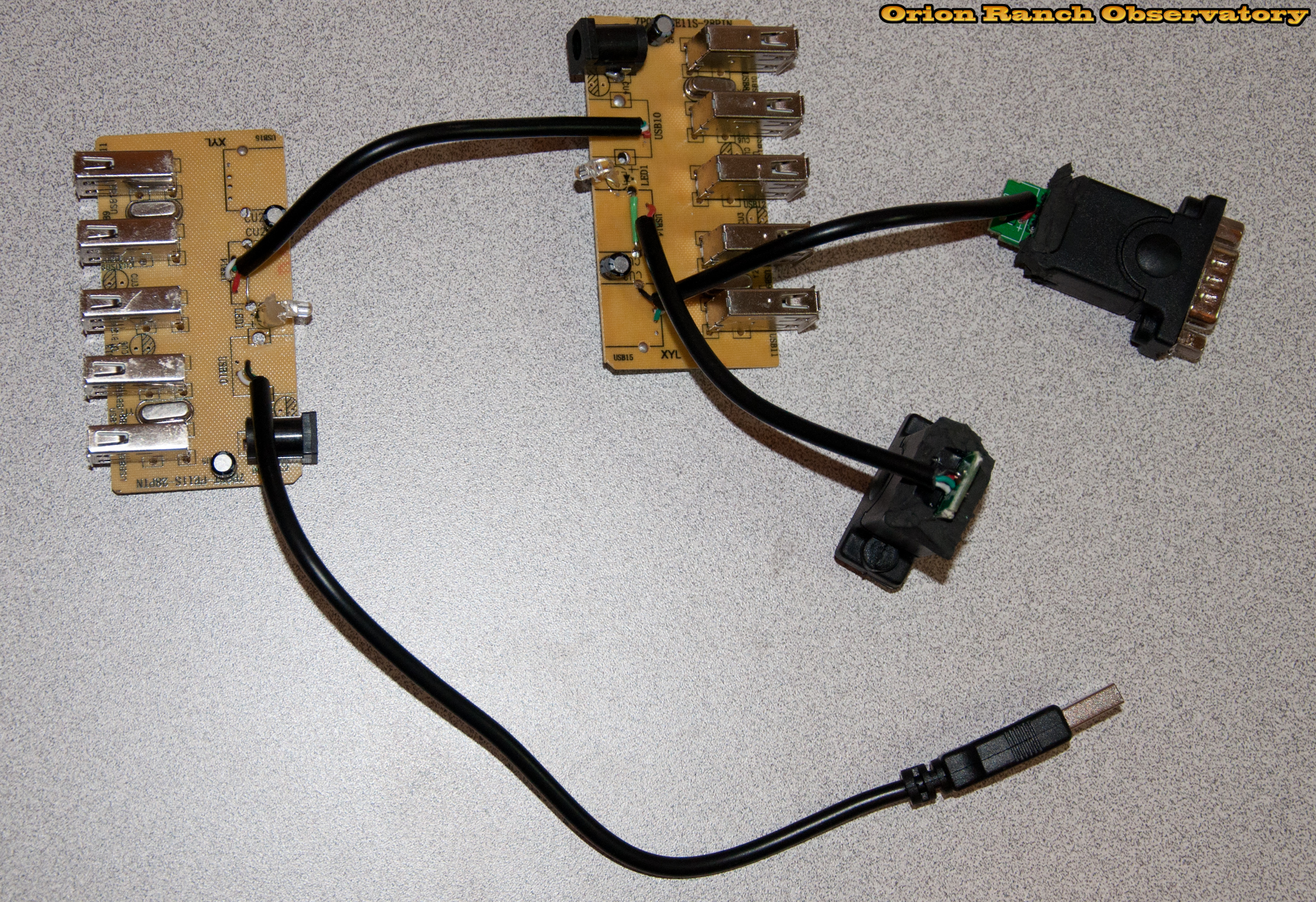 One of the two rear USB outlets jumpers to the input of the second PCB.