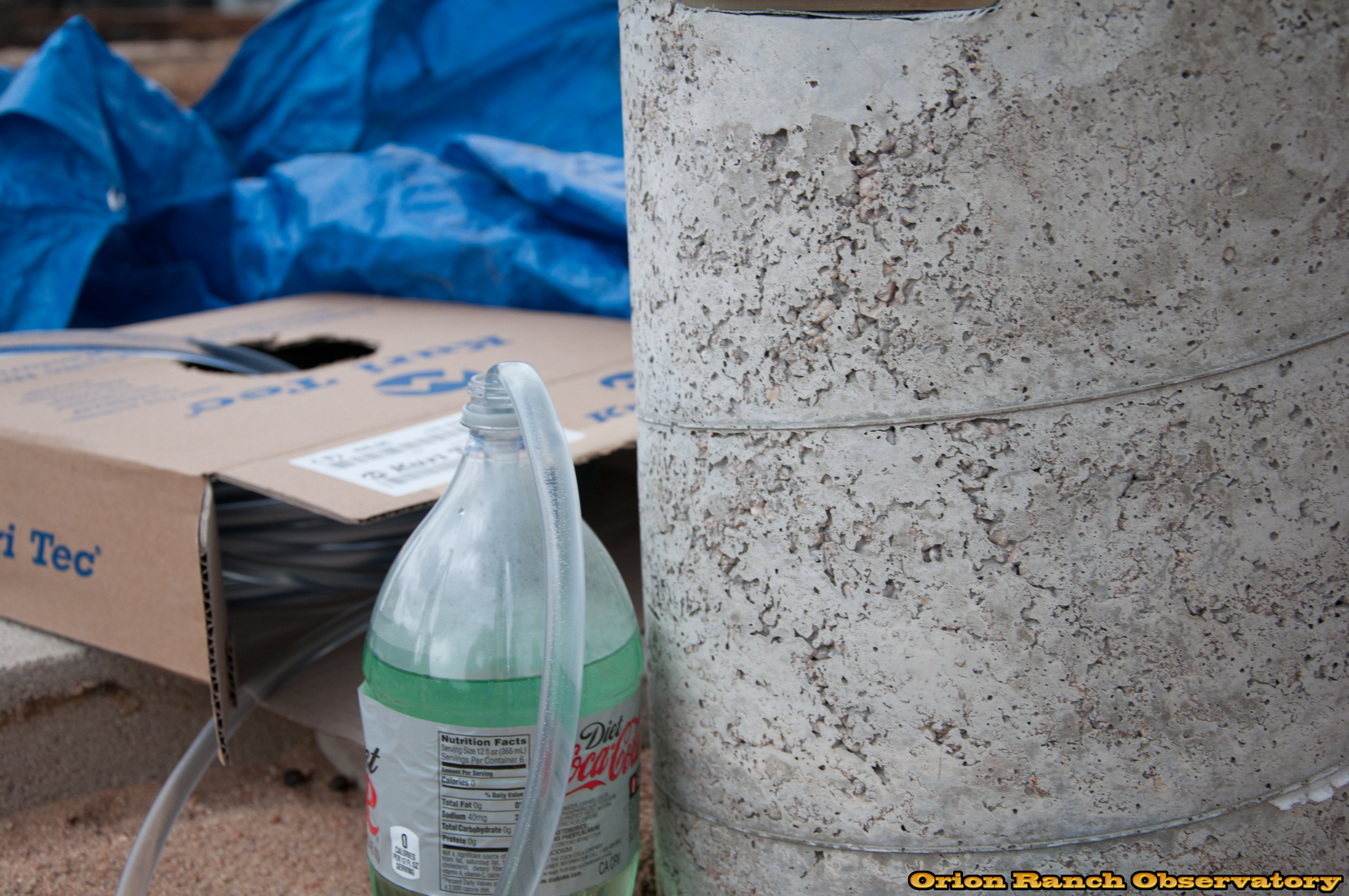Using an old fashioned water level to make sure that everything is level. Works better than a laser level over this distance!