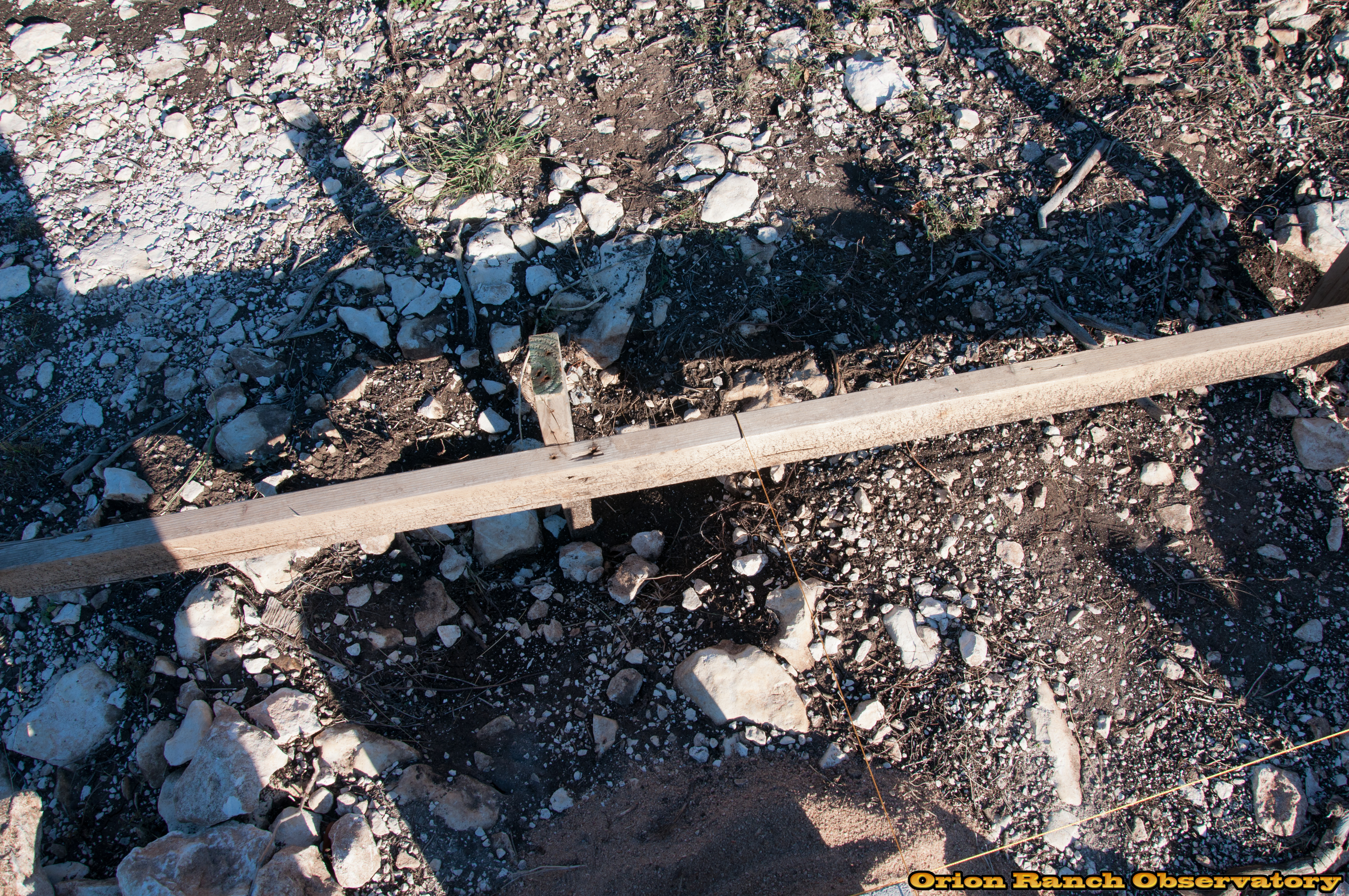 Stringing lines and squaring up boundary of foundation.