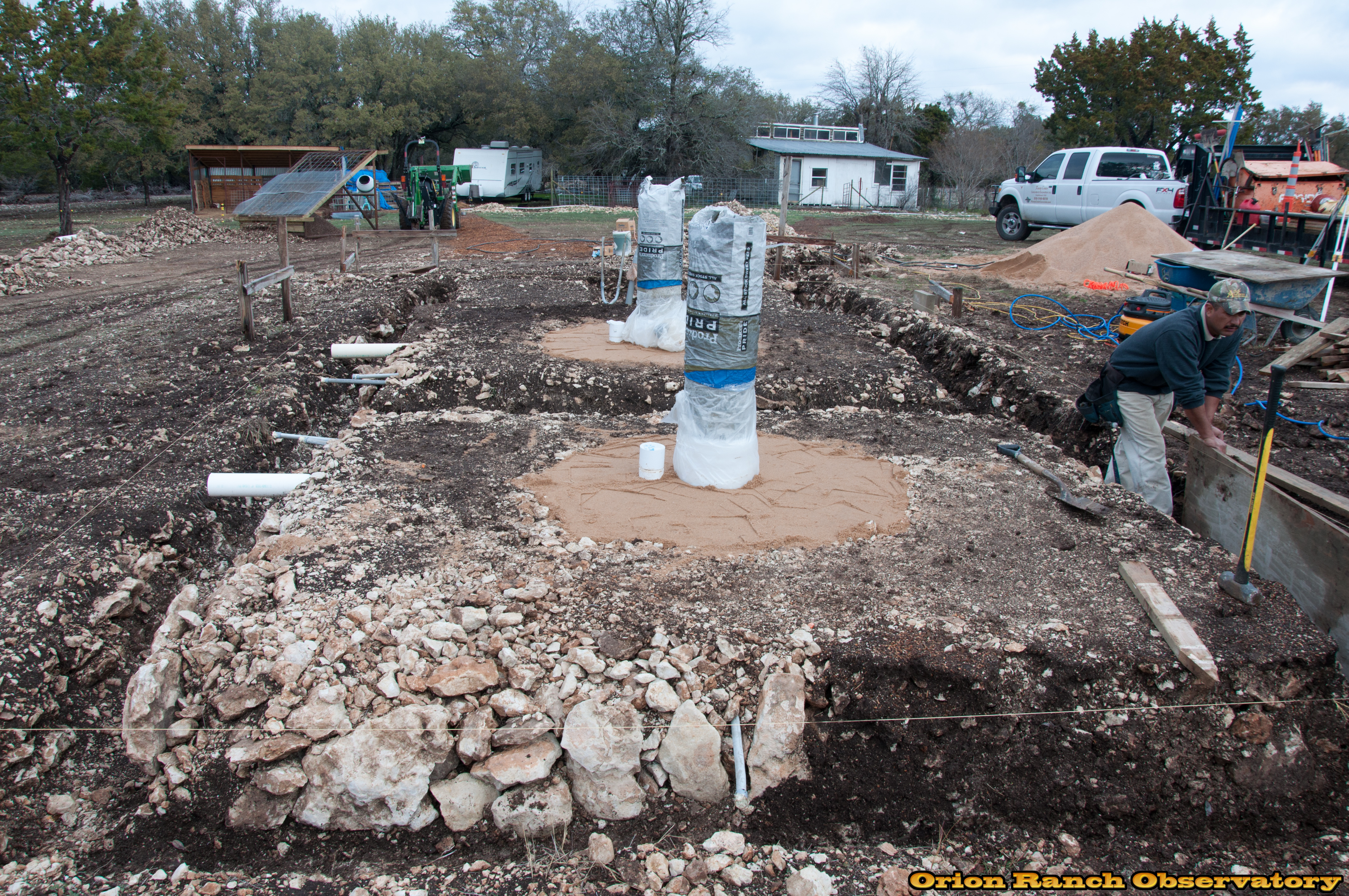 Day 1, the contractor is putting in the forms, and I have to take down the Orion Ranch sign and trim some trees to make room for the concrete trucks!