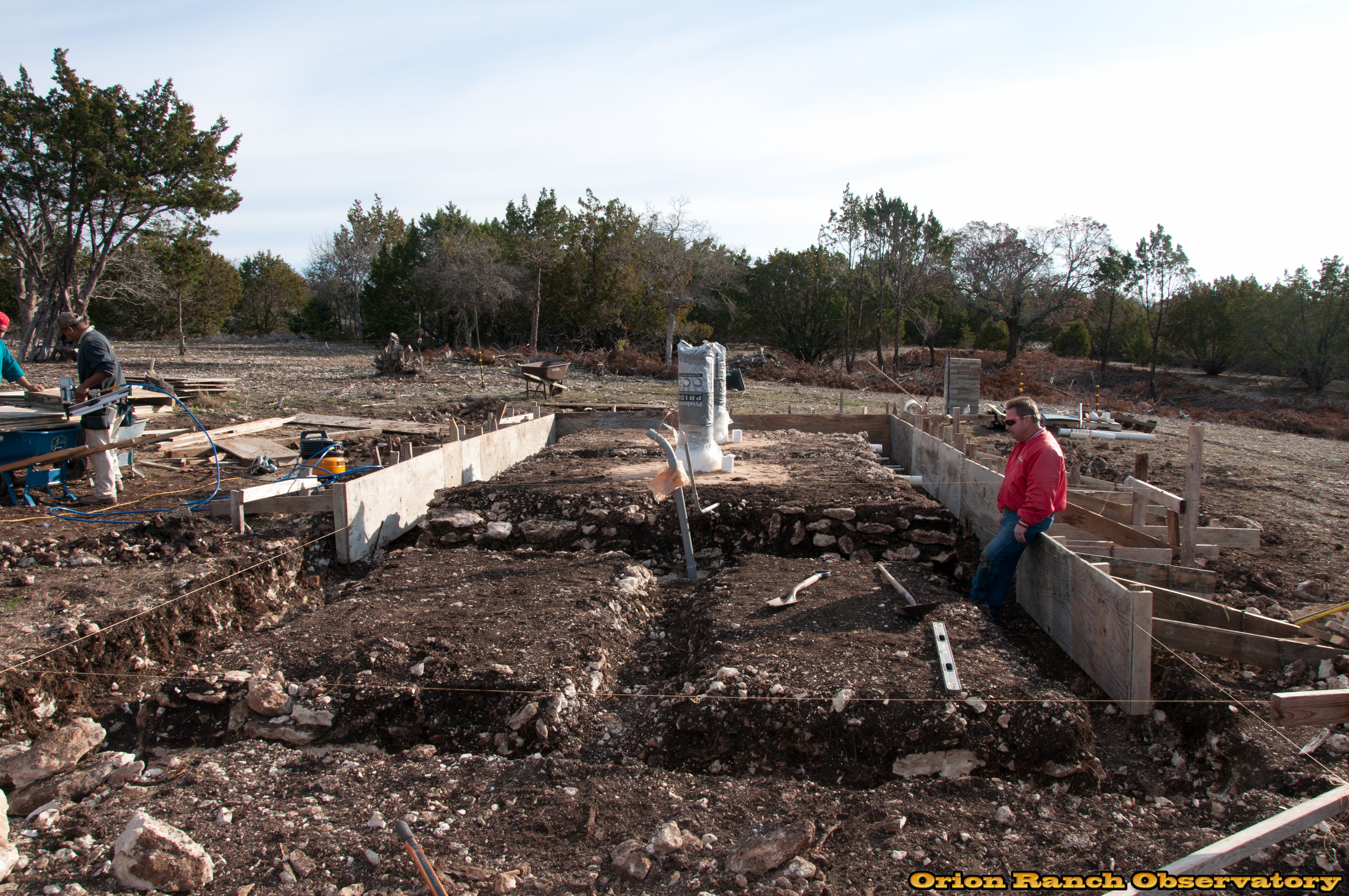 Day 1, the contractor is putting in the forms, and I have to take down the Orion Ranch sign and trim some trees to make room for the concrete trucks!