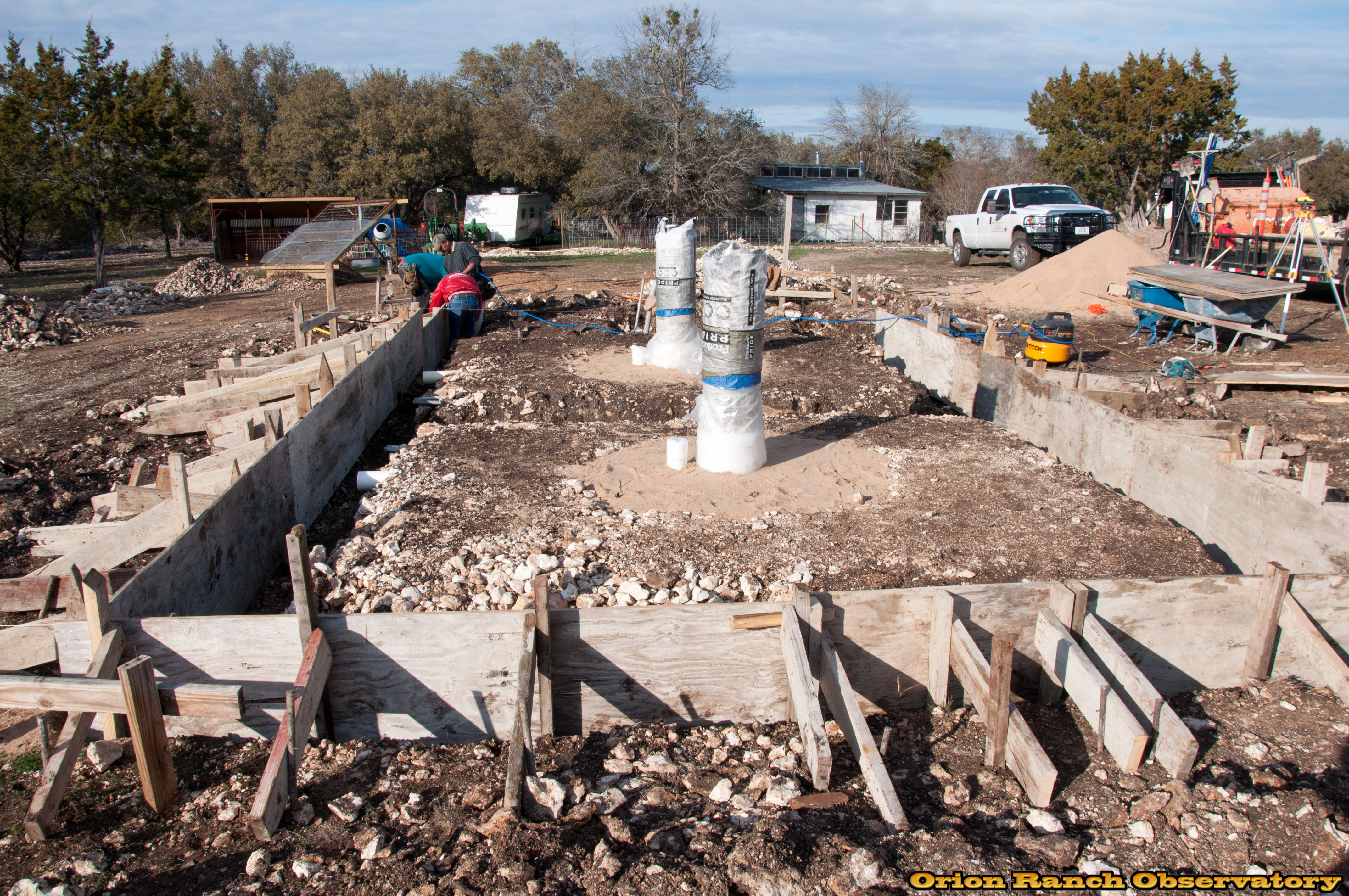 Day 1, the contractor is putting in the forms, and I have to take down the Orion Ranch sign and trim some trees to make room for the concrete trucks!