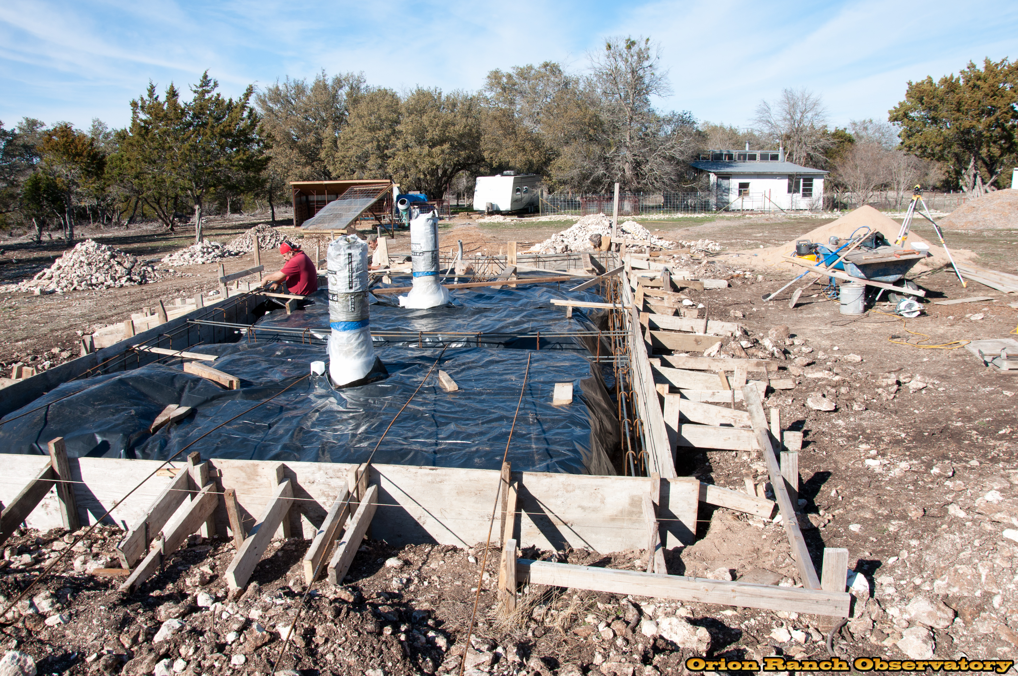 On day 2, they put down the vapor barrier and started on the rebar, finishing the beams.