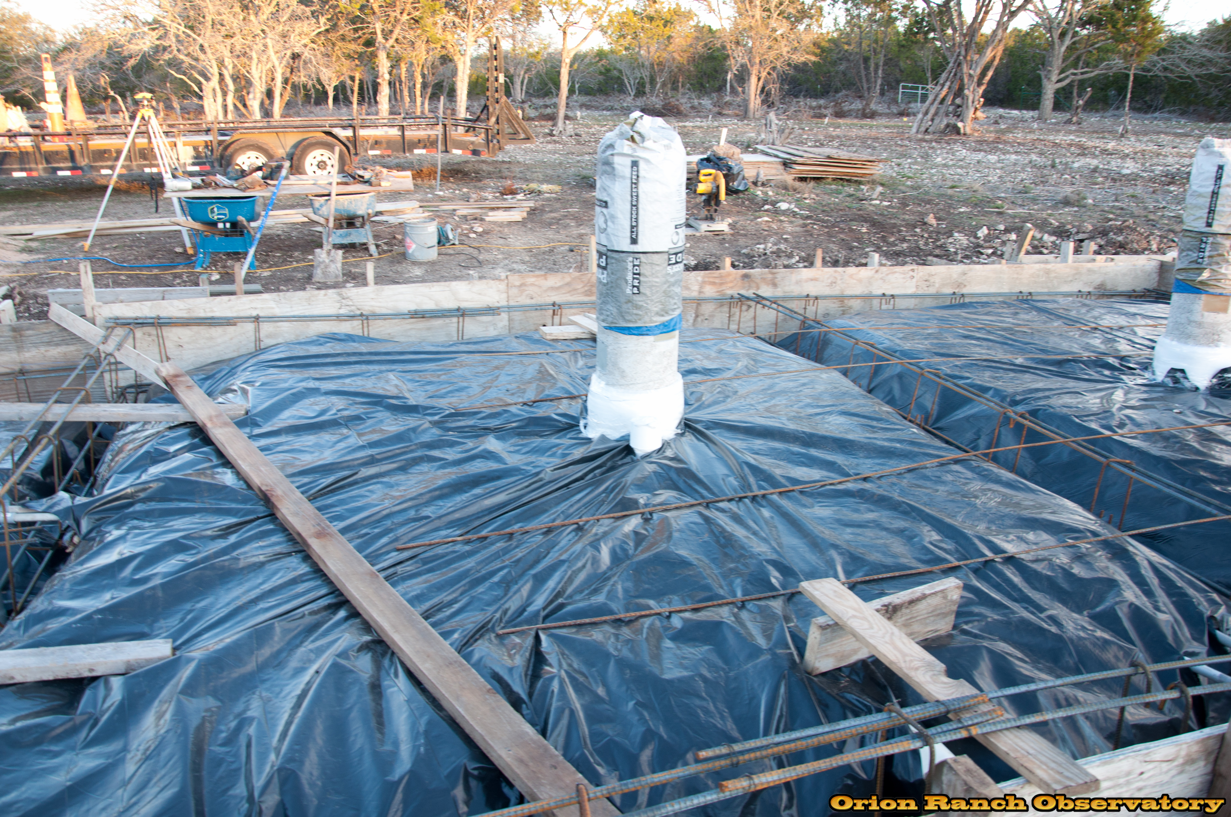 On day 2, they put down the vapor barrier and started on the rebar, finishing the beams. I then tied in my vapor barrier on the piers to theirs.