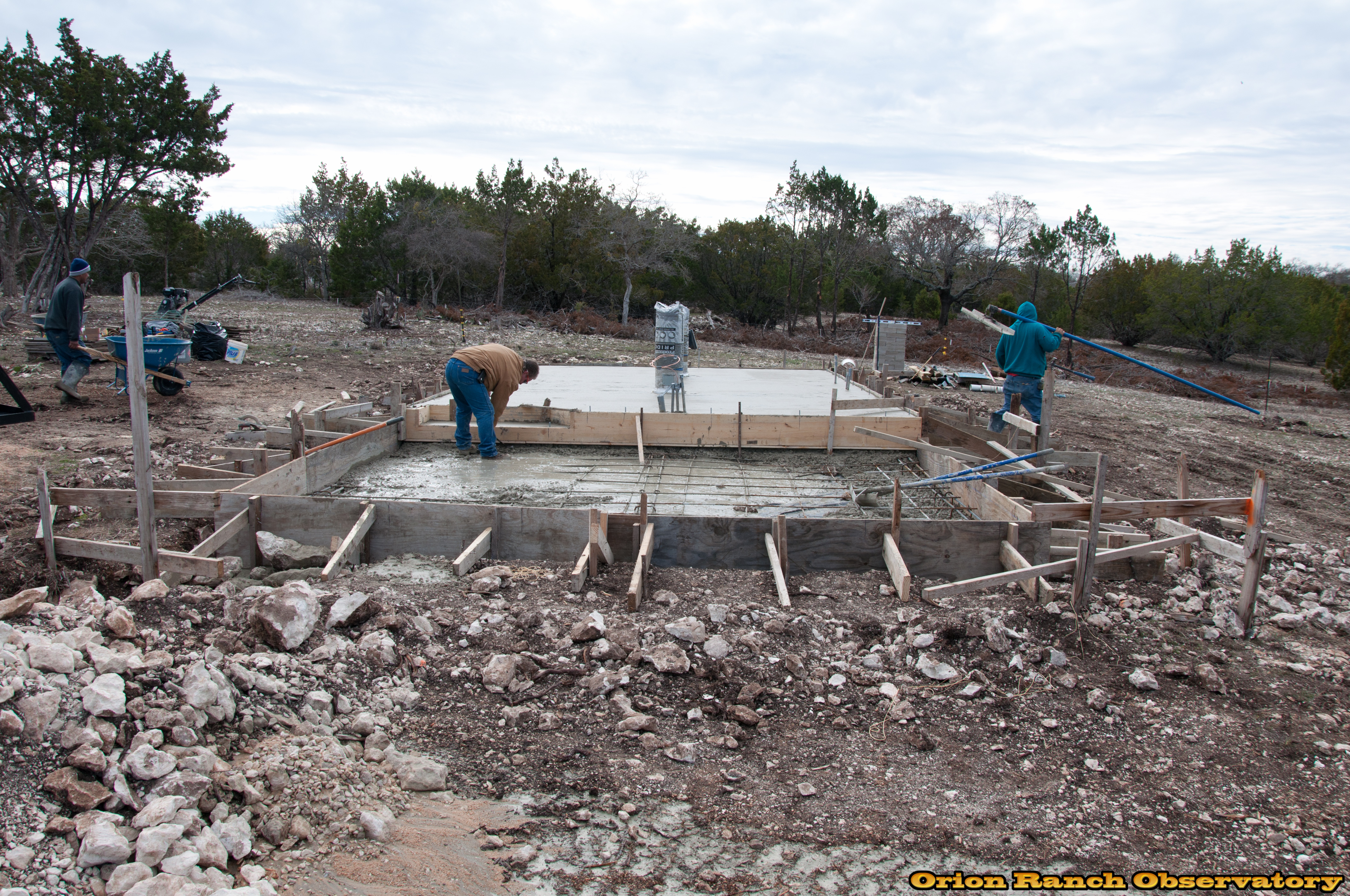 Leveling and troweling out the upper slab. I also had to go around and add in all my anchor bolts.