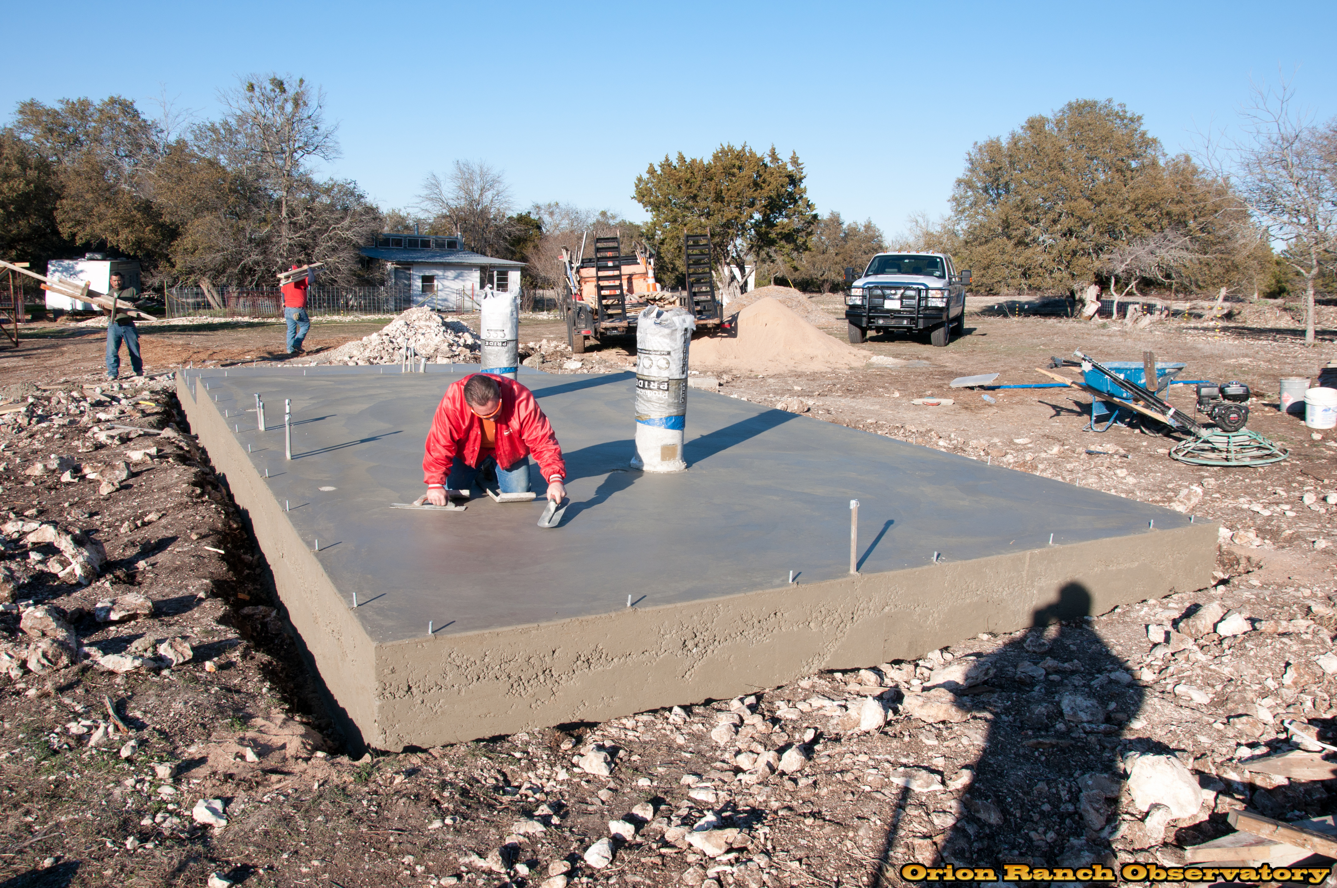 For the rest of the day, they continue troweling and waiting on the slab to cure enough to smooth it out. The soupy bottom slab was of course a problem, especially as the sun went down. Hopefully it'll still be strong enough and not crack!