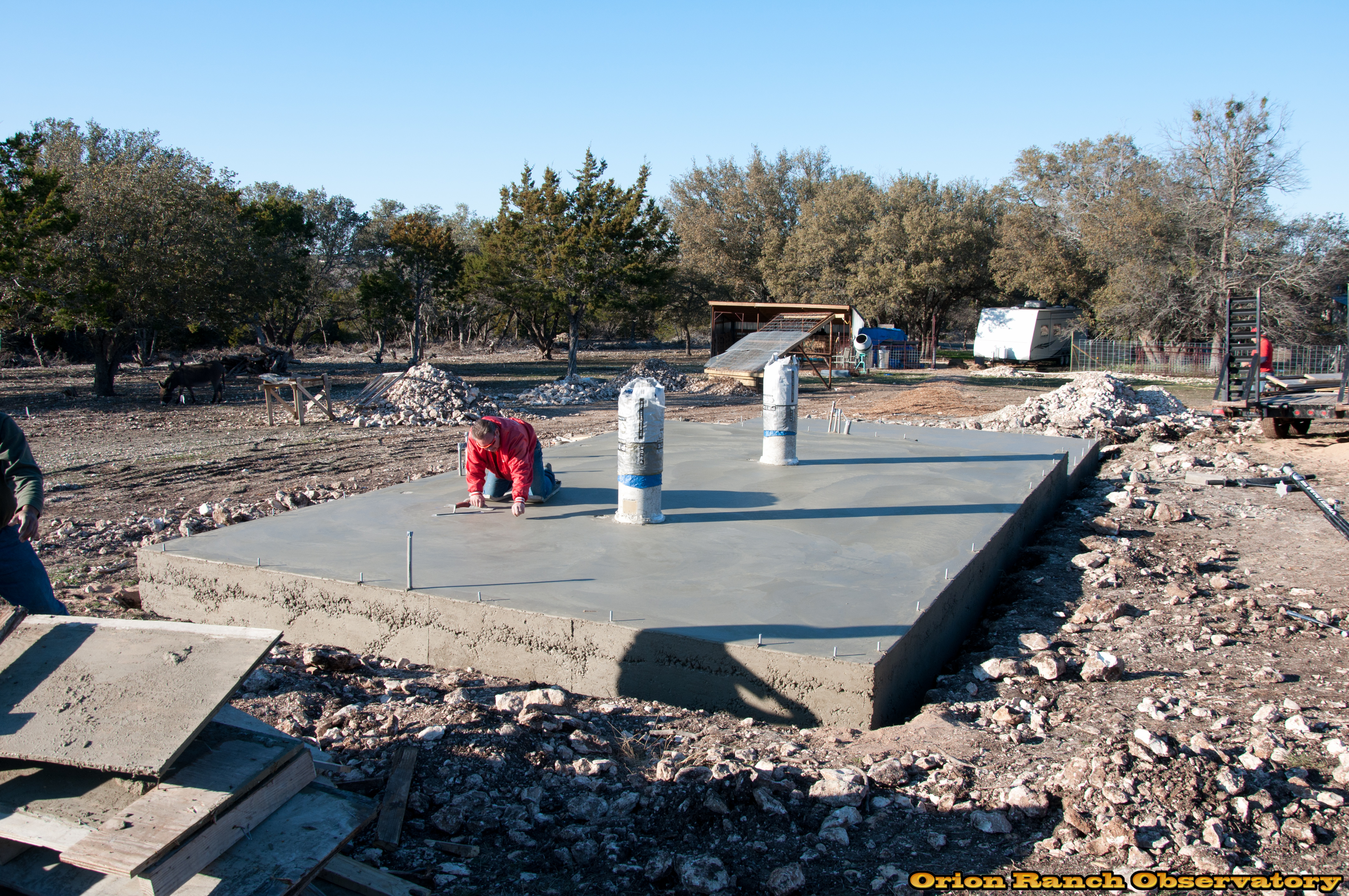 For the rest of the day, they continue troweling and waiting on the slab to cure enough to smooth it out. The soupy bottom slab was of course a problem, especially as the sun went down. Hopefully it'll still be strong enough and not crack!